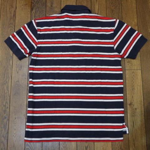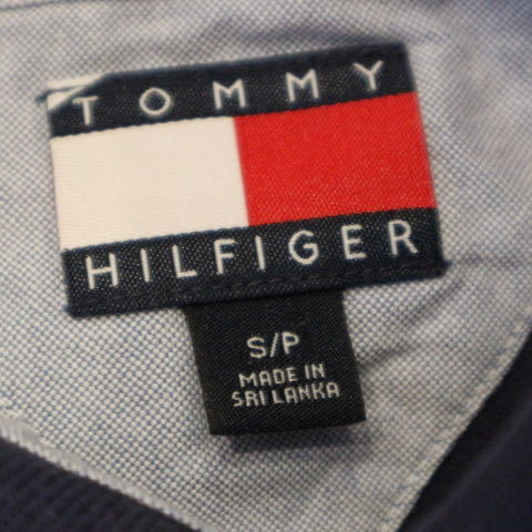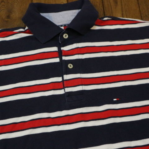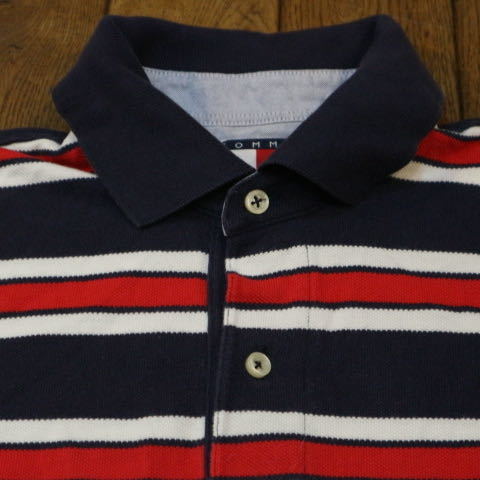 90s TOMMY HILFIGER ポロシャツ S ブルー レッド ボーダー トミーヒルフィガー