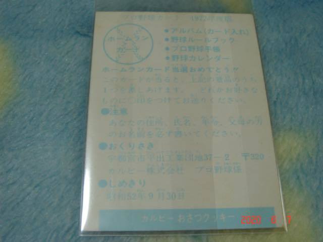 *1977年に、カルビー製菓から発売されました、プロ野球スナックのホームラン・カードです。
