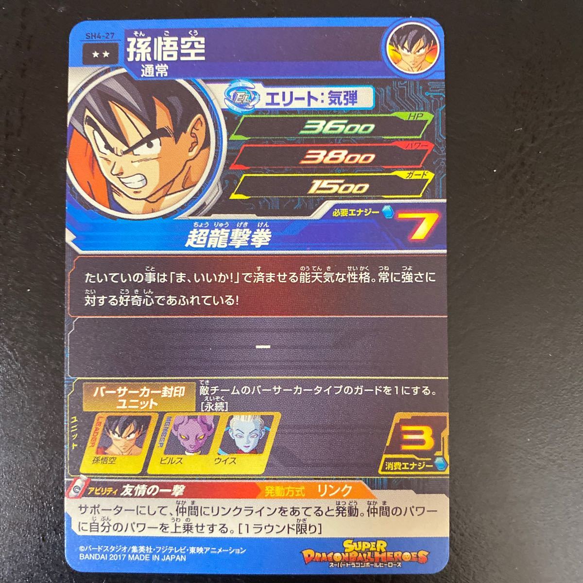 SH4弾レア/ 孫悟空(通常)/ SH4-27/ 技:超龍撃拳/ スーパードラゴンボールヒーローズ/ レアリティ:☆☆/ 2017 BANDAI