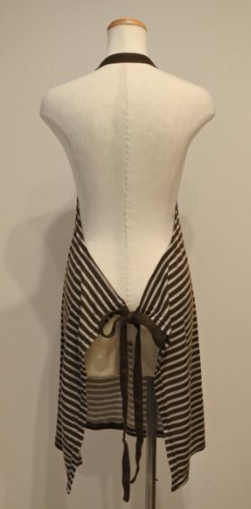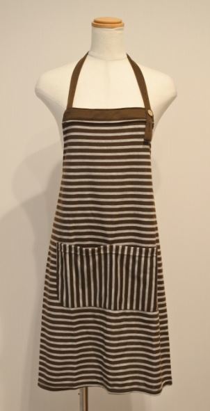 | MAMAIKUKO ママイクコ エプロン 首掛けエプロン M~L ブラウンxグレー ボーダー 美品 ymdnrk k②h0518 | |||