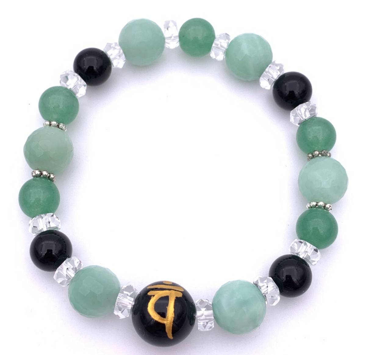 天然石オニキス守護仏梵字金彫り&オニキス&カルセドニー&アベンチュリンのブレスレット