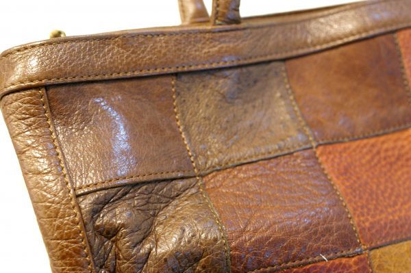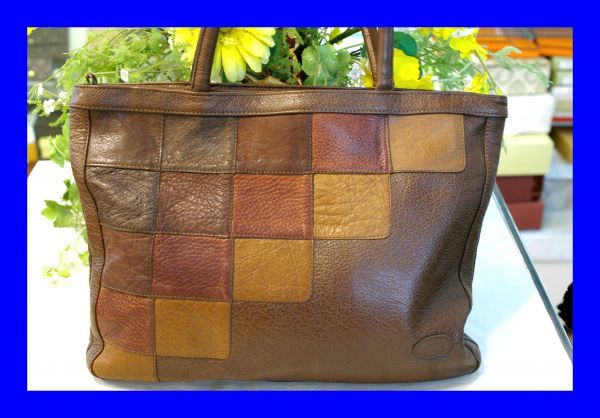 ■商品名○美品 イビザ IBIZA バッファロー パッチワーク トートバッグ ブラウン B0433 200521 | |||||||||||||