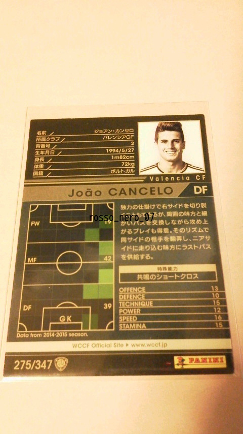 ☆WCCF2015-2016☆15-16☆275☆白☆ジョアン・カンセロ☆バレンシアCF☆Joao Cancelo☆Valencia CF☆
