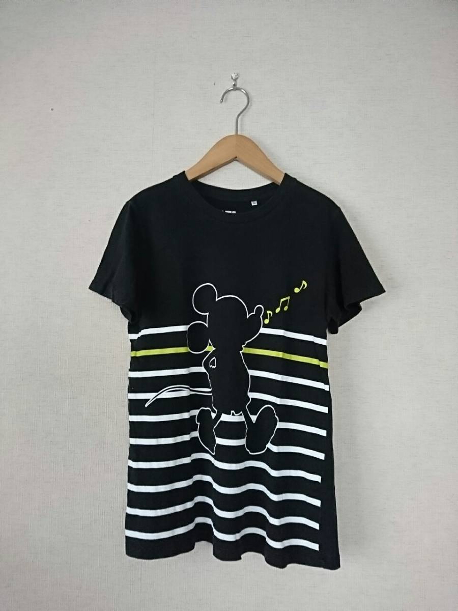 ユニクロUNIQLO UT キッズ ミッキーTシャツ L 黒×白ボーダー ディズニーコラボ コットン   248 3D3012