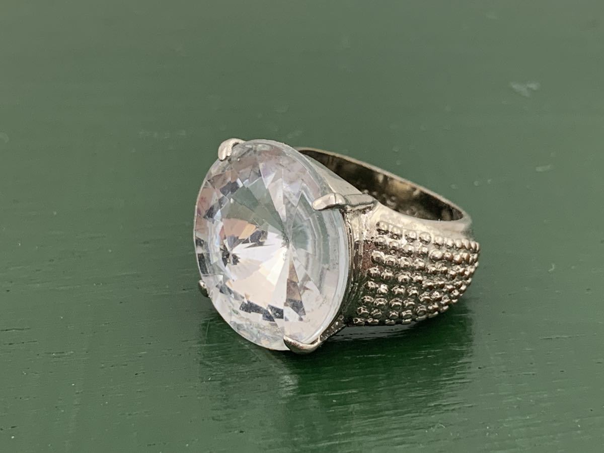 【送料無料】NEWS ニュース ジャニーズ 2008-2009 シルバー調 アクリルラインストーン ヴィンテージ リング 指輪 サイズ 9