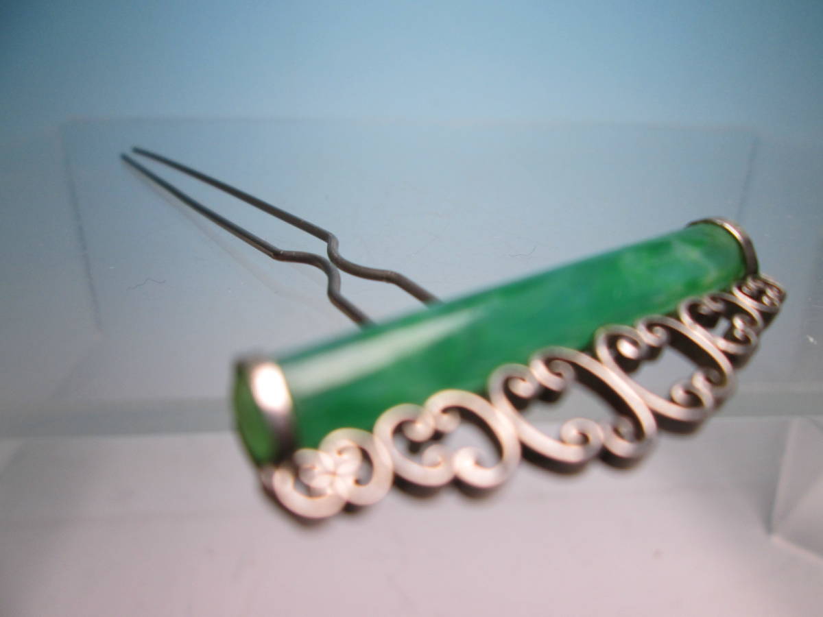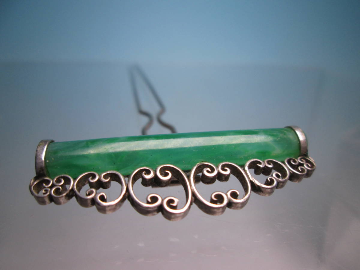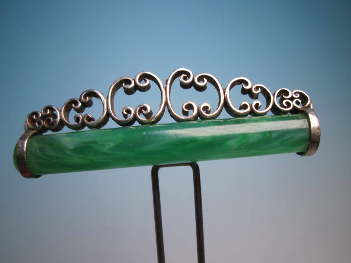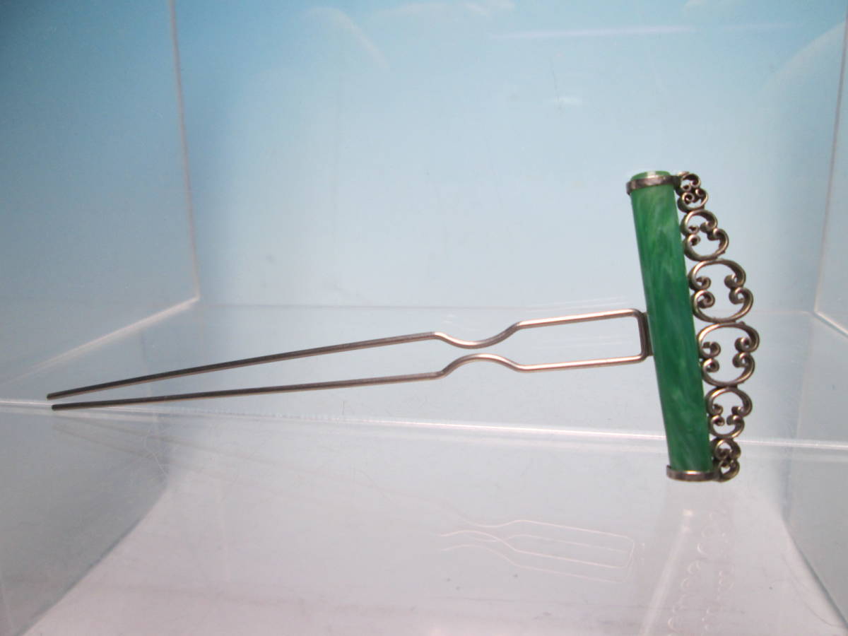 【江月】アンティーク・彫金細工 緑硝子飾りの素敵なかんざし 7,67g