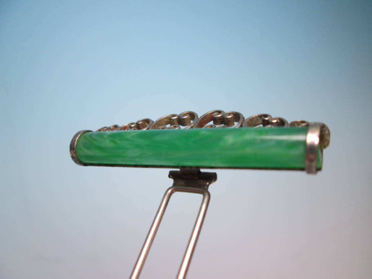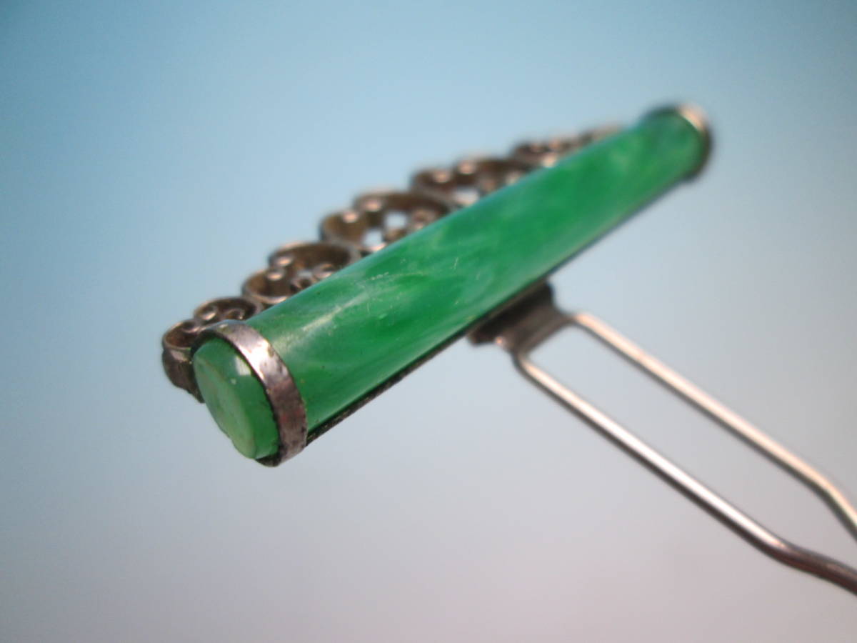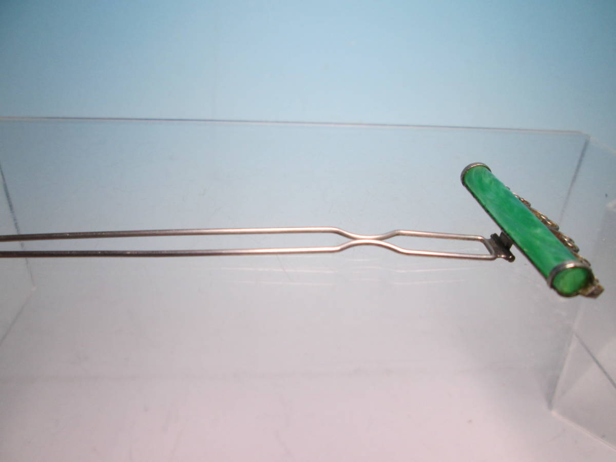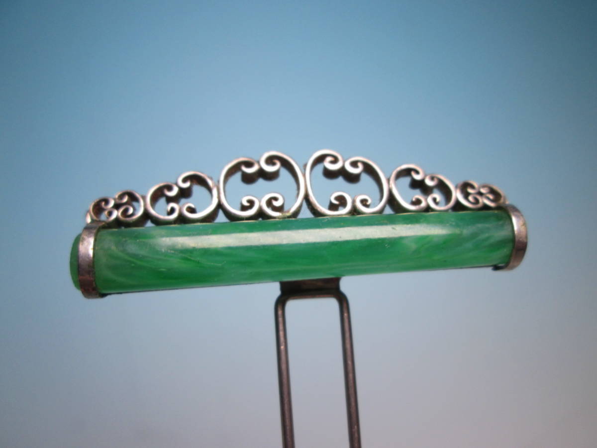 【江月】アンティーク・彫金細工 緑硝子飾りの素敵なかんざし 7,67g