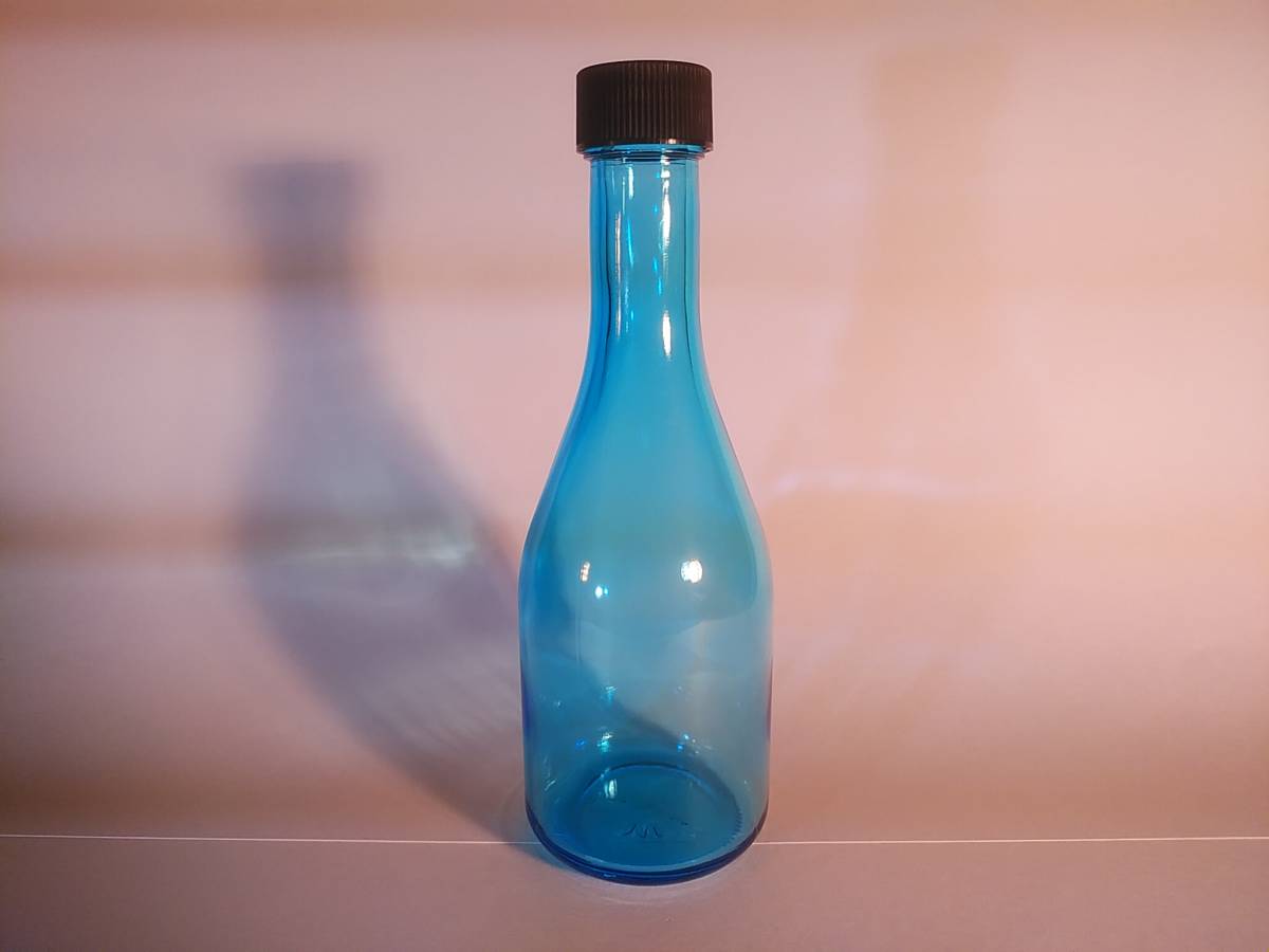 【未使用新品】一本あたり91.7円!! 300mlガラスびん 青 (規格300 OSB) 24本入り 黒キャップ付き