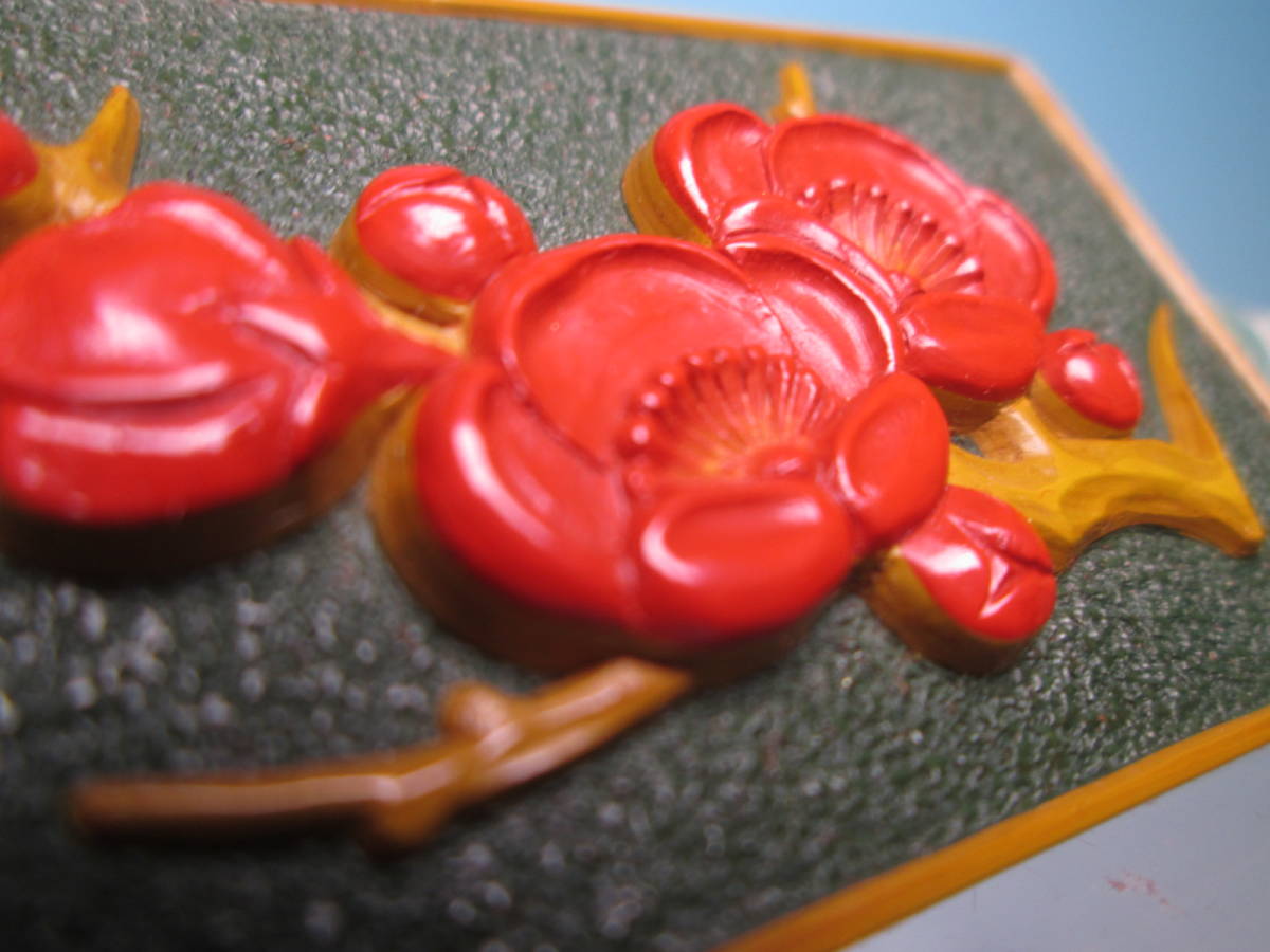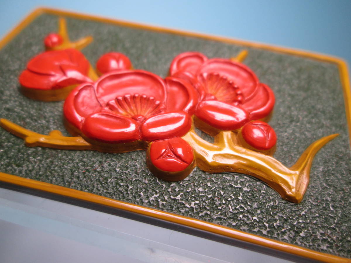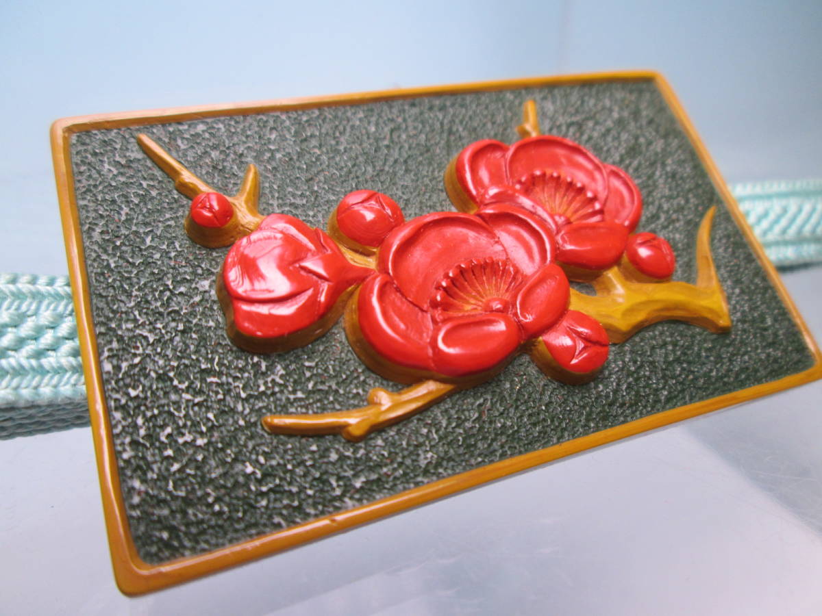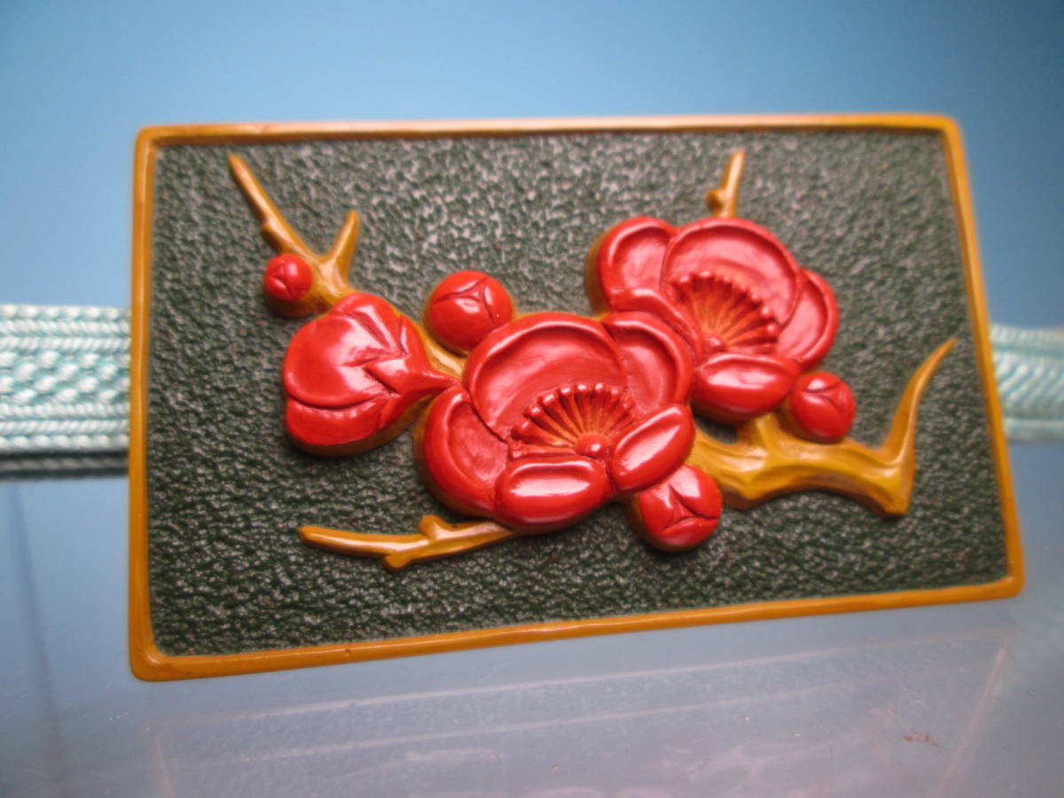 【江月】☆アンティーク・巴 清鳳作 本鼈甲 堆朱細工 紅梅の帯留め 共ケース付