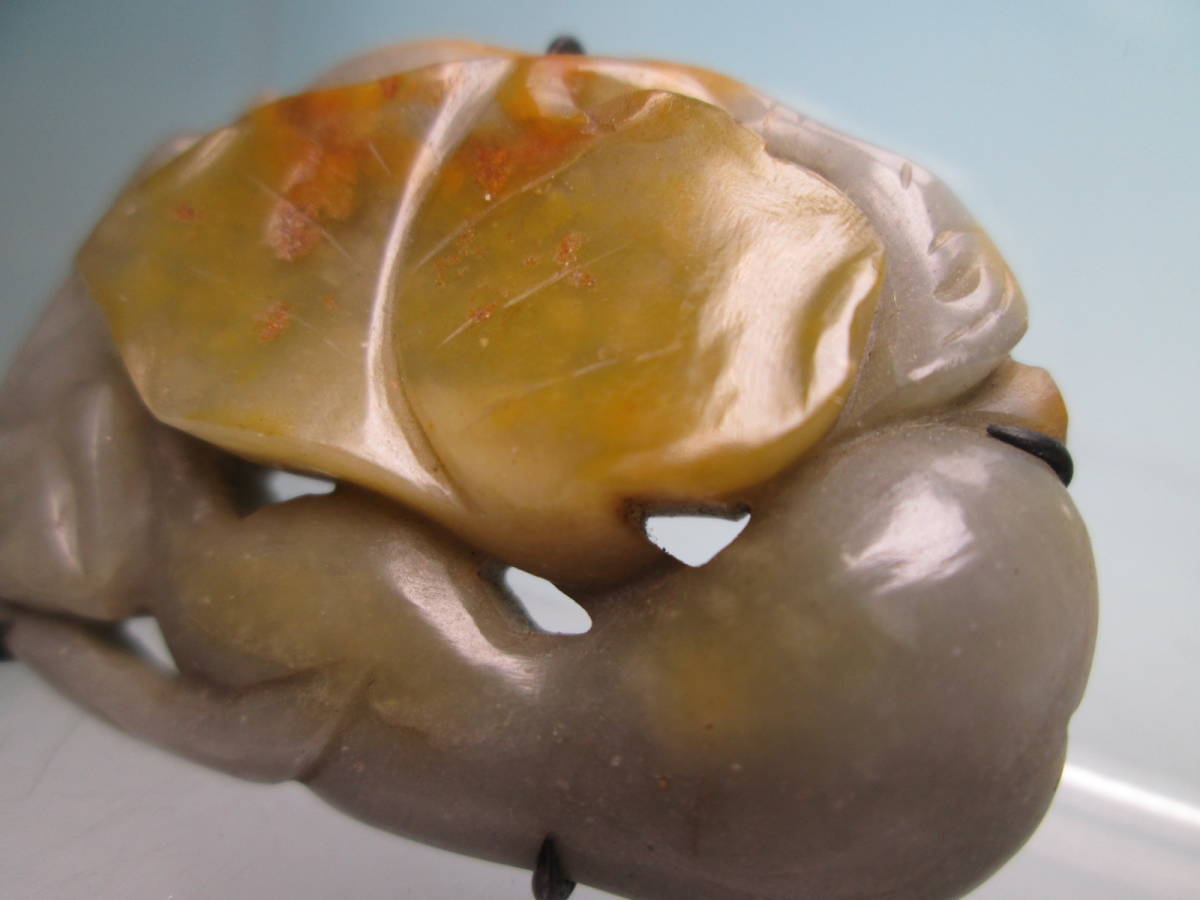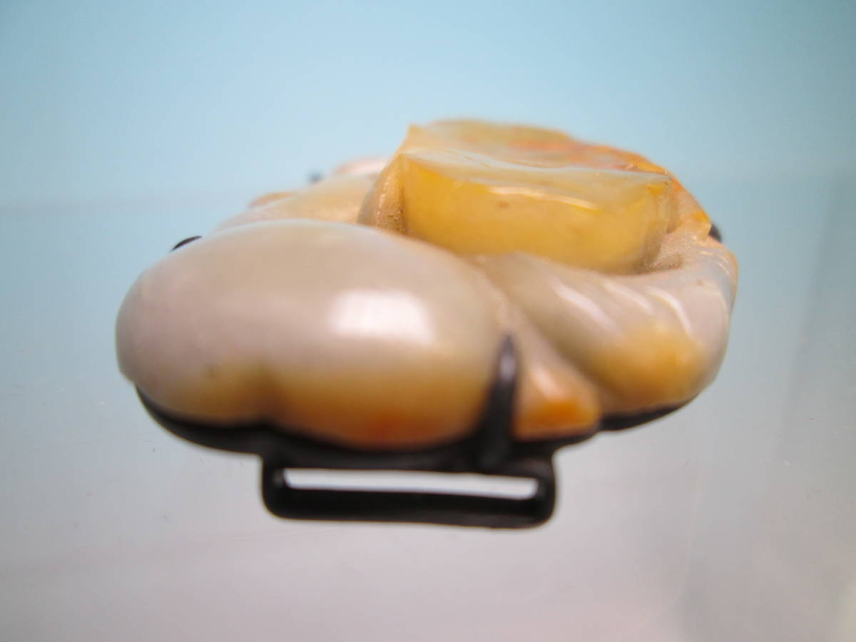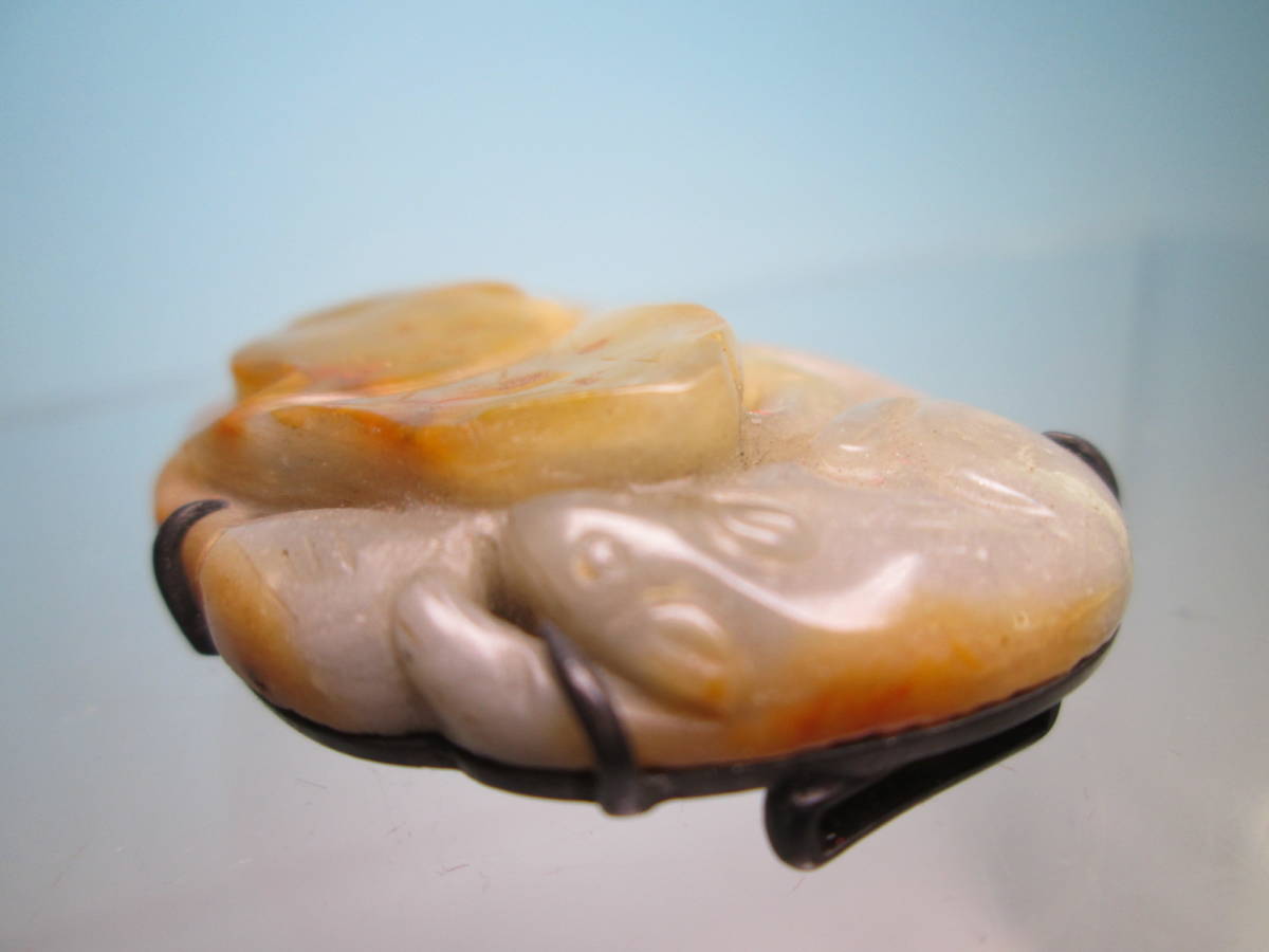 【江月】アンティーク・中国 砡石製 大根に栗鼠彫刻の帯留め 15,44g