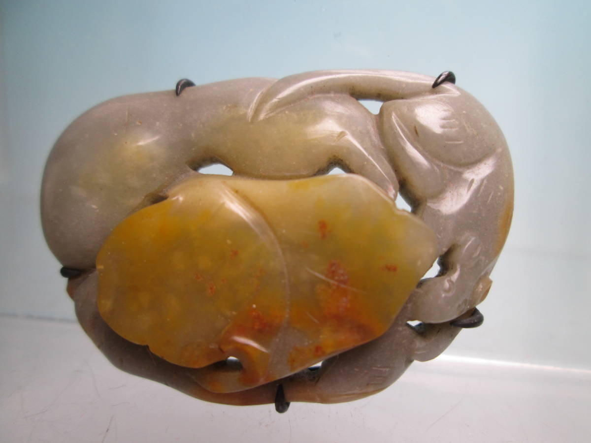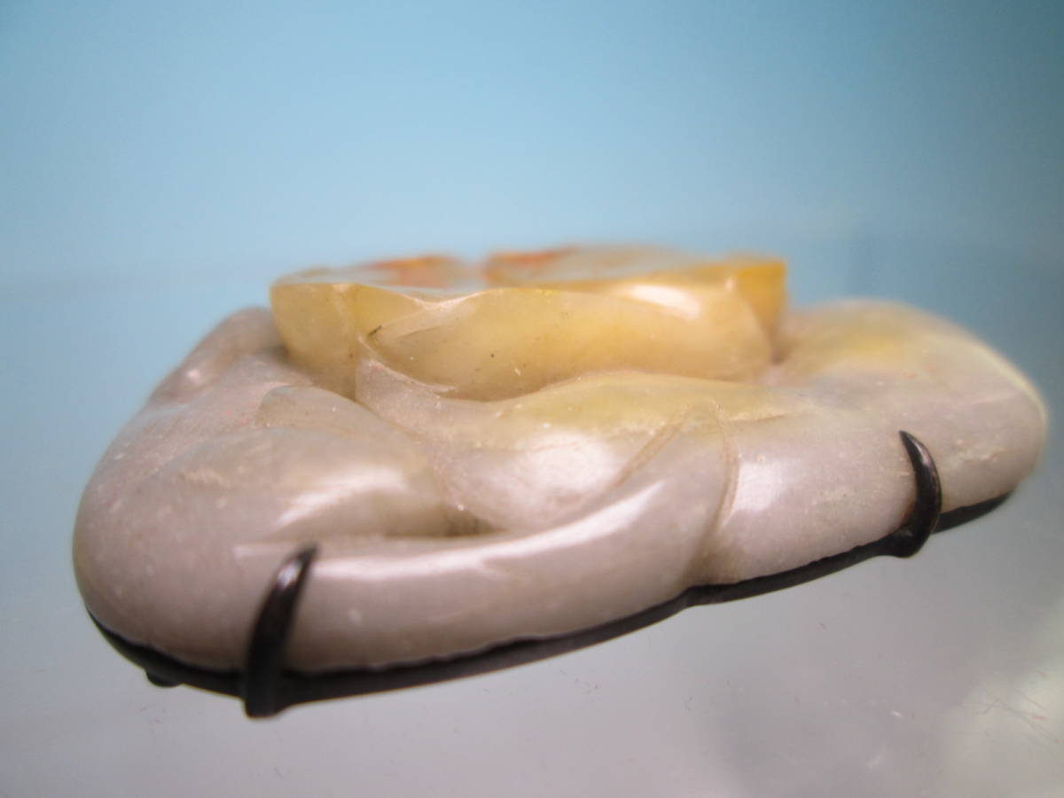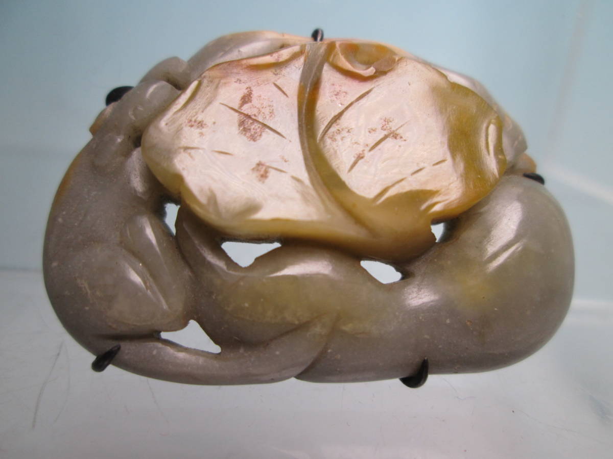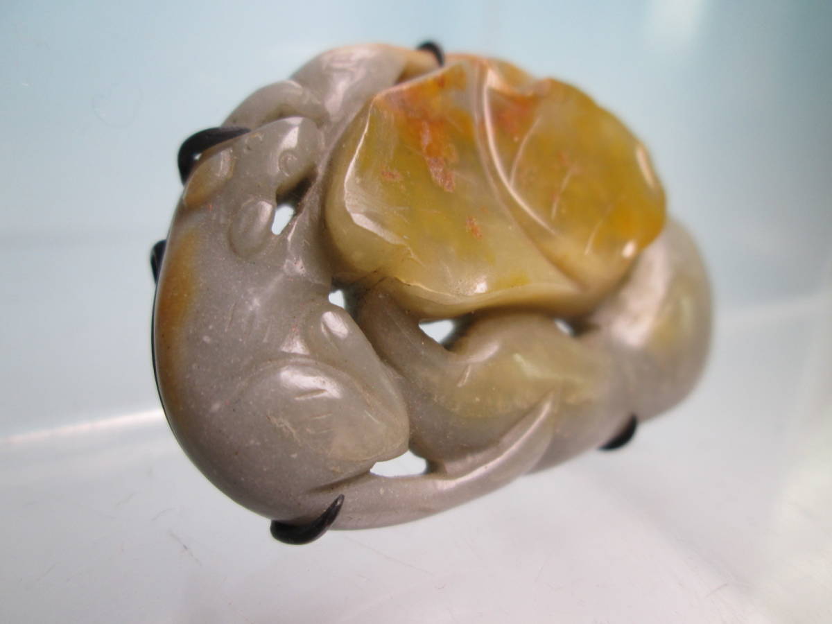 【江月】アンティーク・中国 砡石製 大根に栗鼠彫刻の帯留め 15,44g