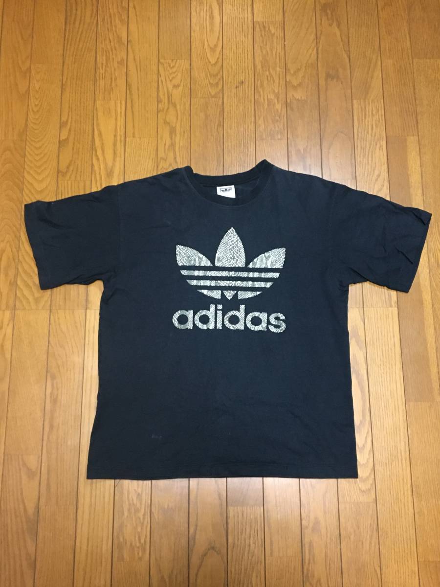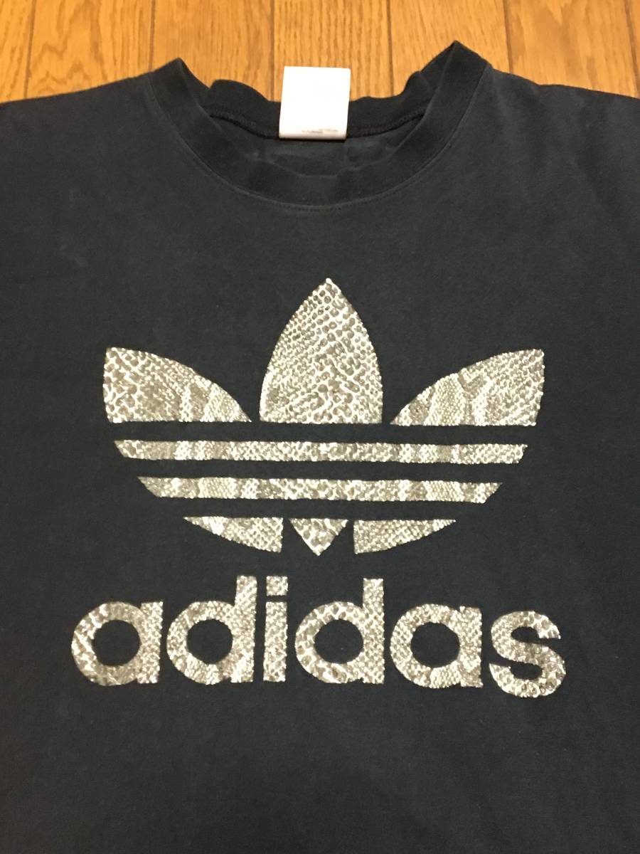 レア adidas アディダス Tシャツ 蛇柄 M 黒 リザード トレフォイル ロゴ ブラック コットン オールド 90s