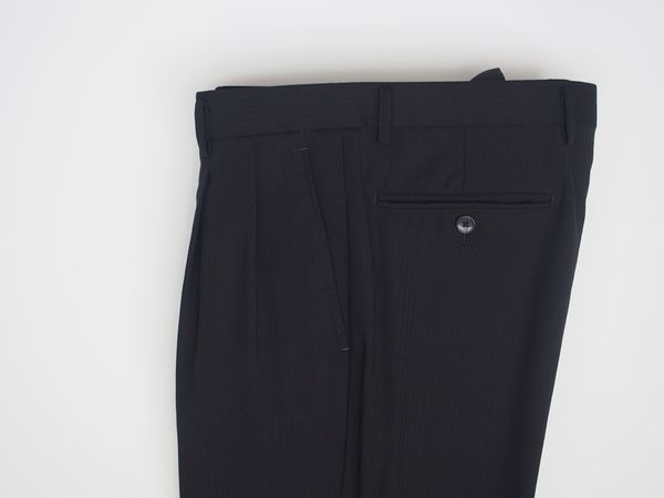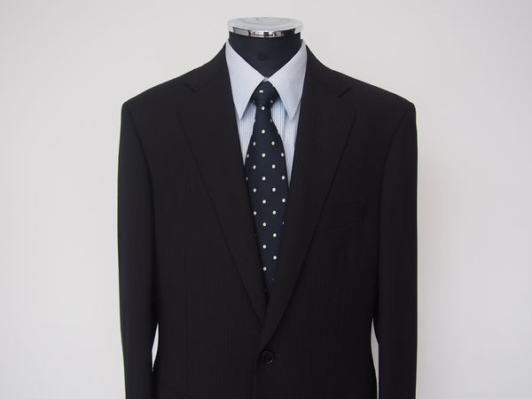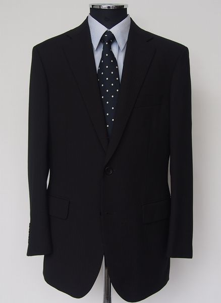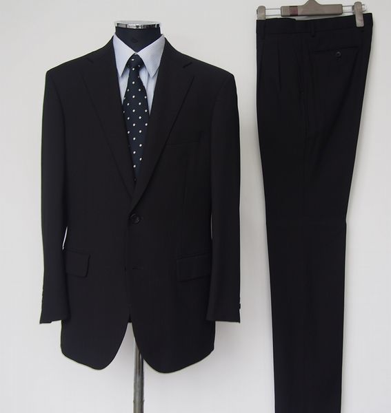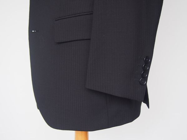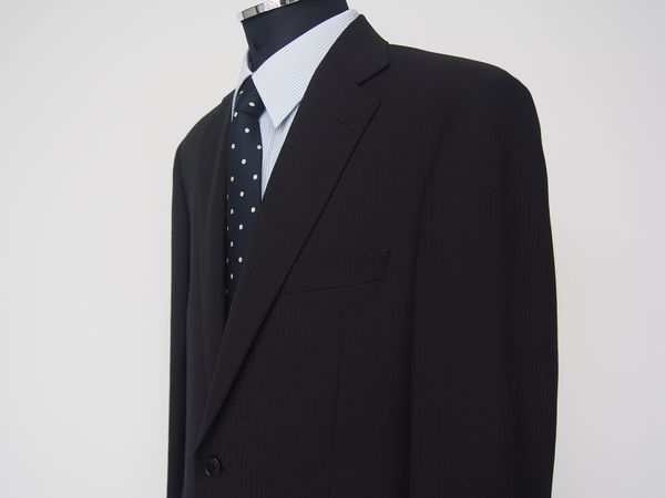 【在庫処分】《ウオッシャブル》◆お手入れ簡単◆折り目持続加工◆年代を問わず人気◆ツータック2っ釦スーツ◆3032 A5◆黒 織ストライプ