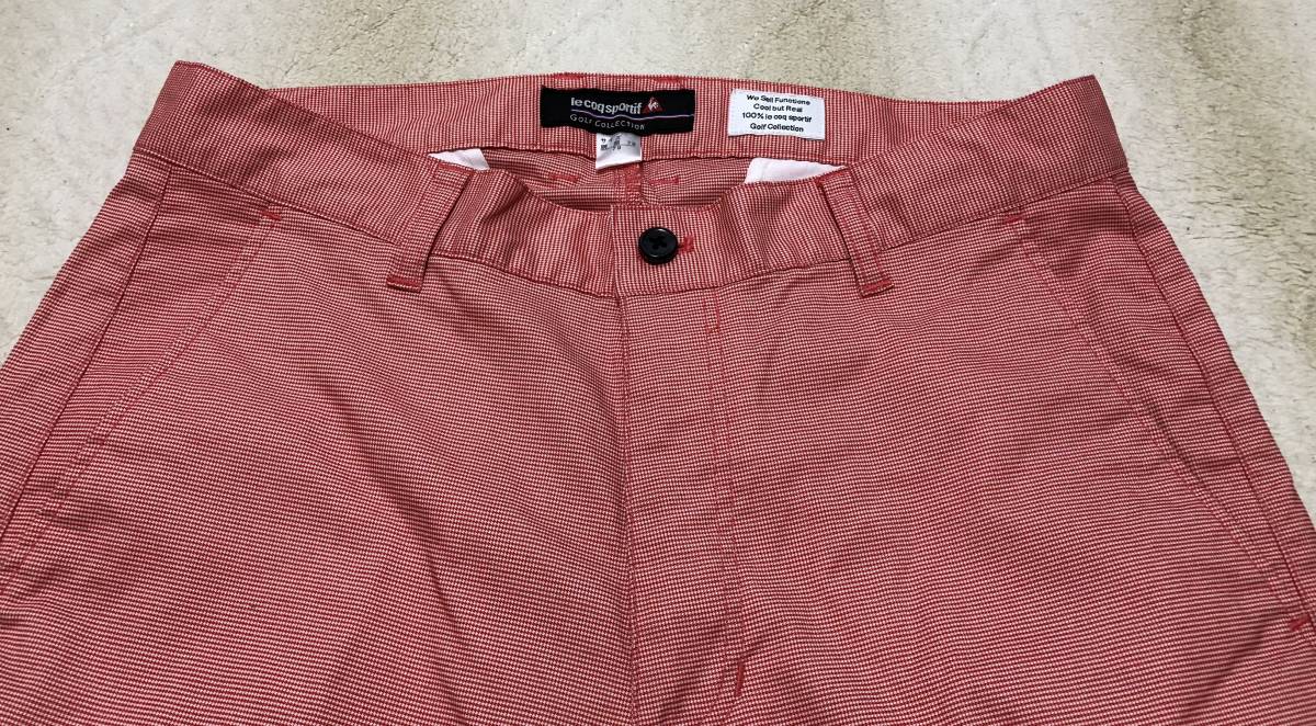 【USED】ルコックゴルフ ノータックパンツ 79サイズ 赤系 千鳥柄 | ||||