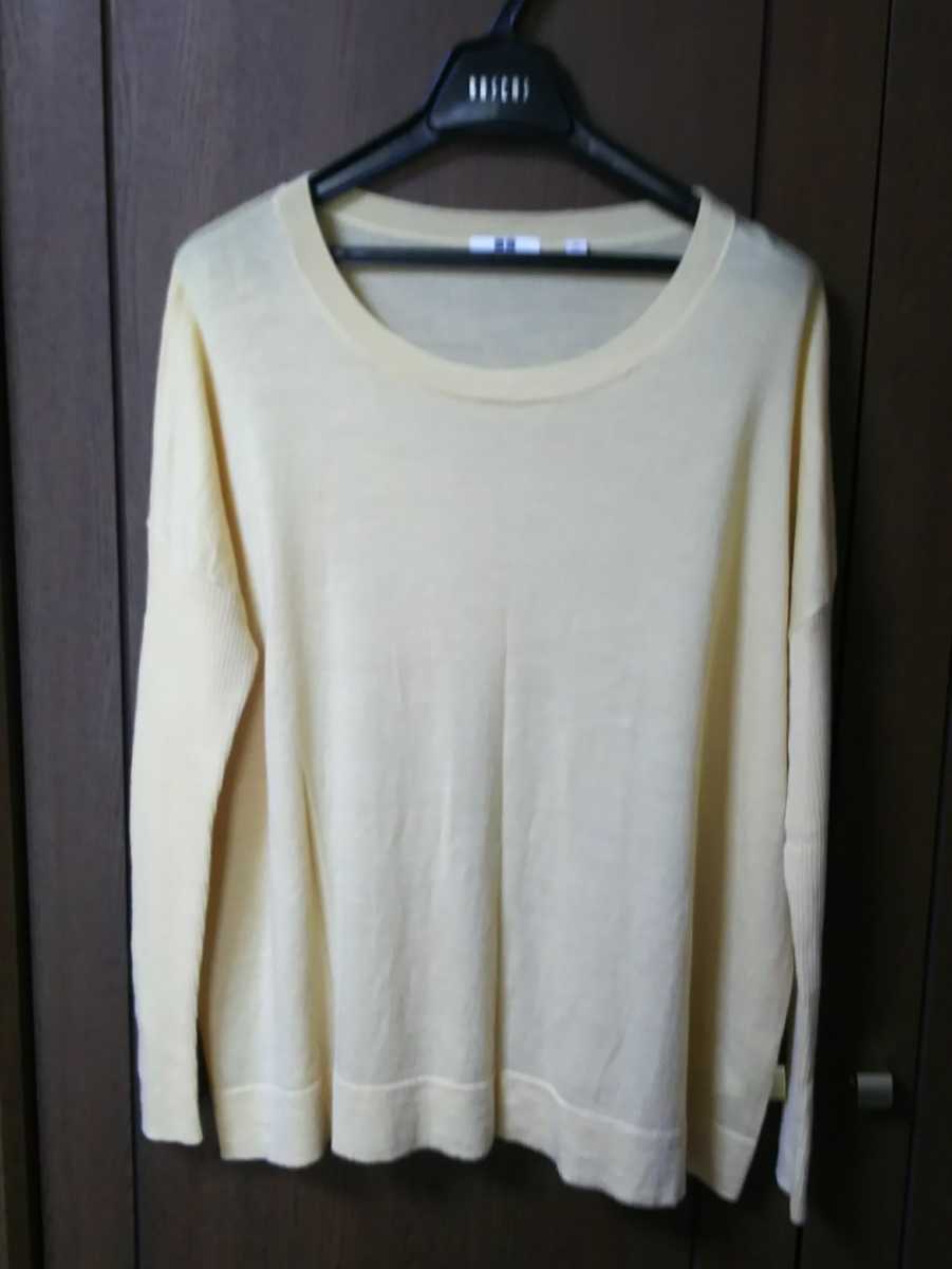 ユニクロのドルマンニットLサイズ、実寸は平置きで幅65、丈63、薄手の柔らかいニットです。