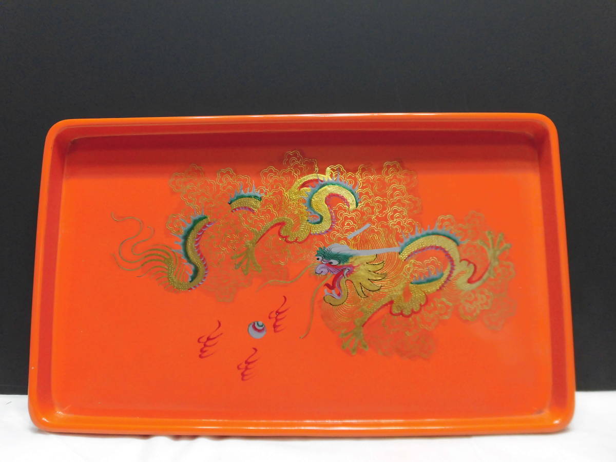 木製=漆塗りお盆(金塗り=龍文)=小、コレクション、工芸品、漆芸、盆