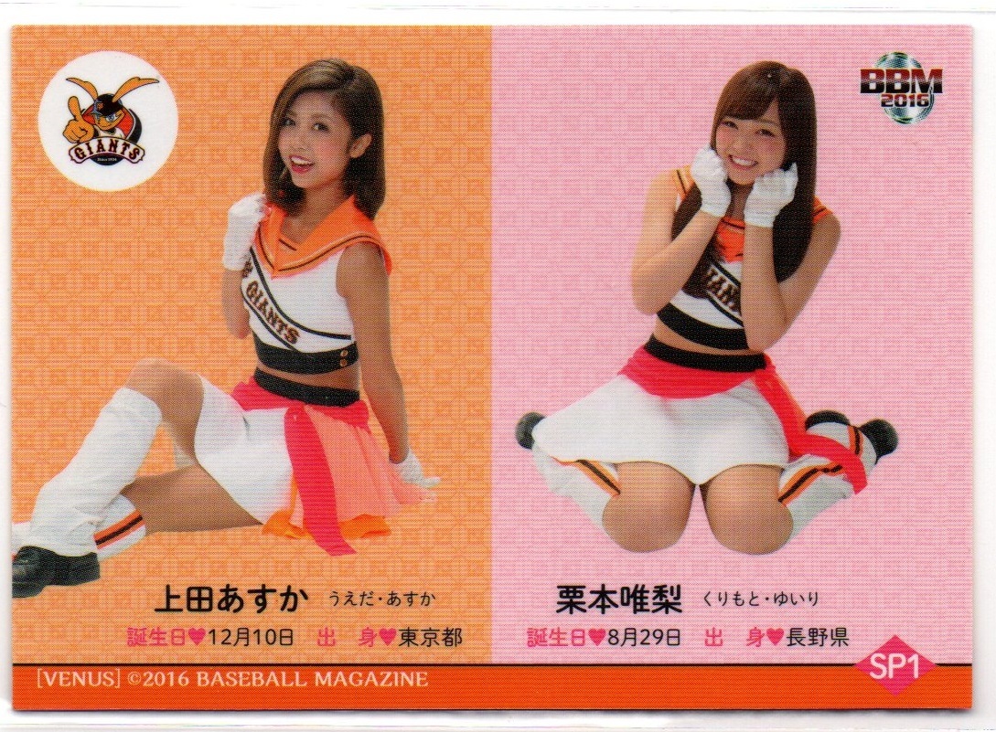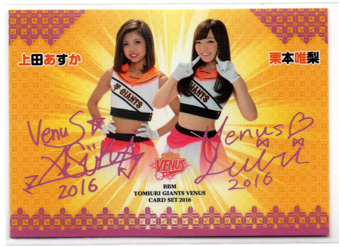 【上田あすか&栗本唯梨】2016 BBM読売ジャイアンツ公式マスコットガール「ヴィーナス」セット~Original Smile~ ピンク箔サインカード