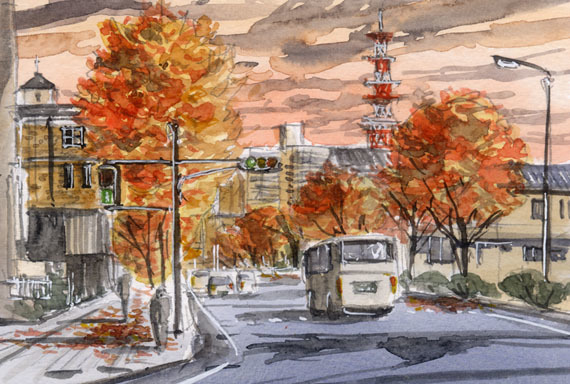 宇都宮には仕事で行ったのですが 会合と会合の間に時間があったので 少し街を歩いてみました 絵は宇都宮駅からほど近い 上河原通りです ちょうど夕暮れ時で 初めて歩いたのに なぜかとても懐かしい気持ちになる風景でした