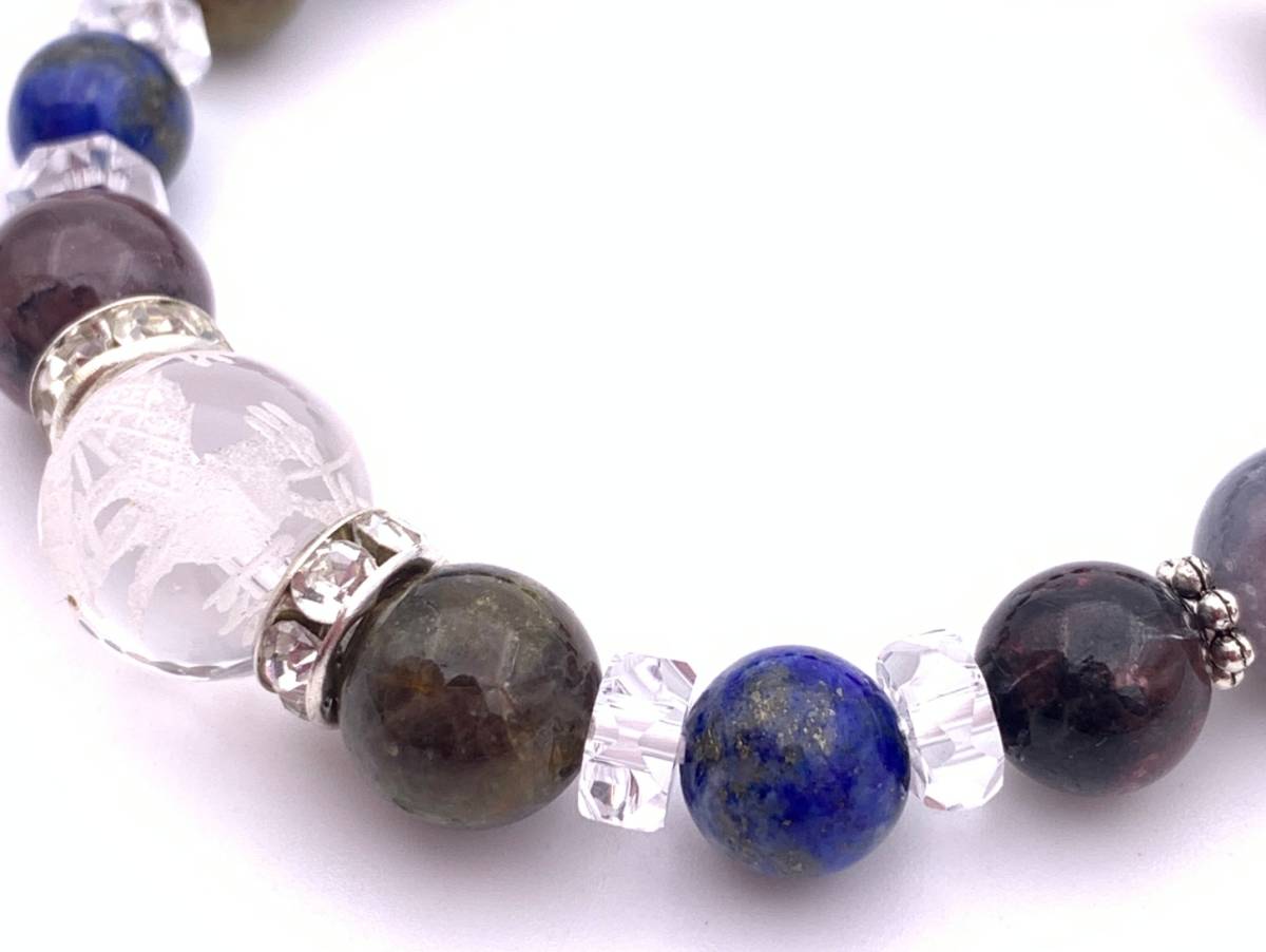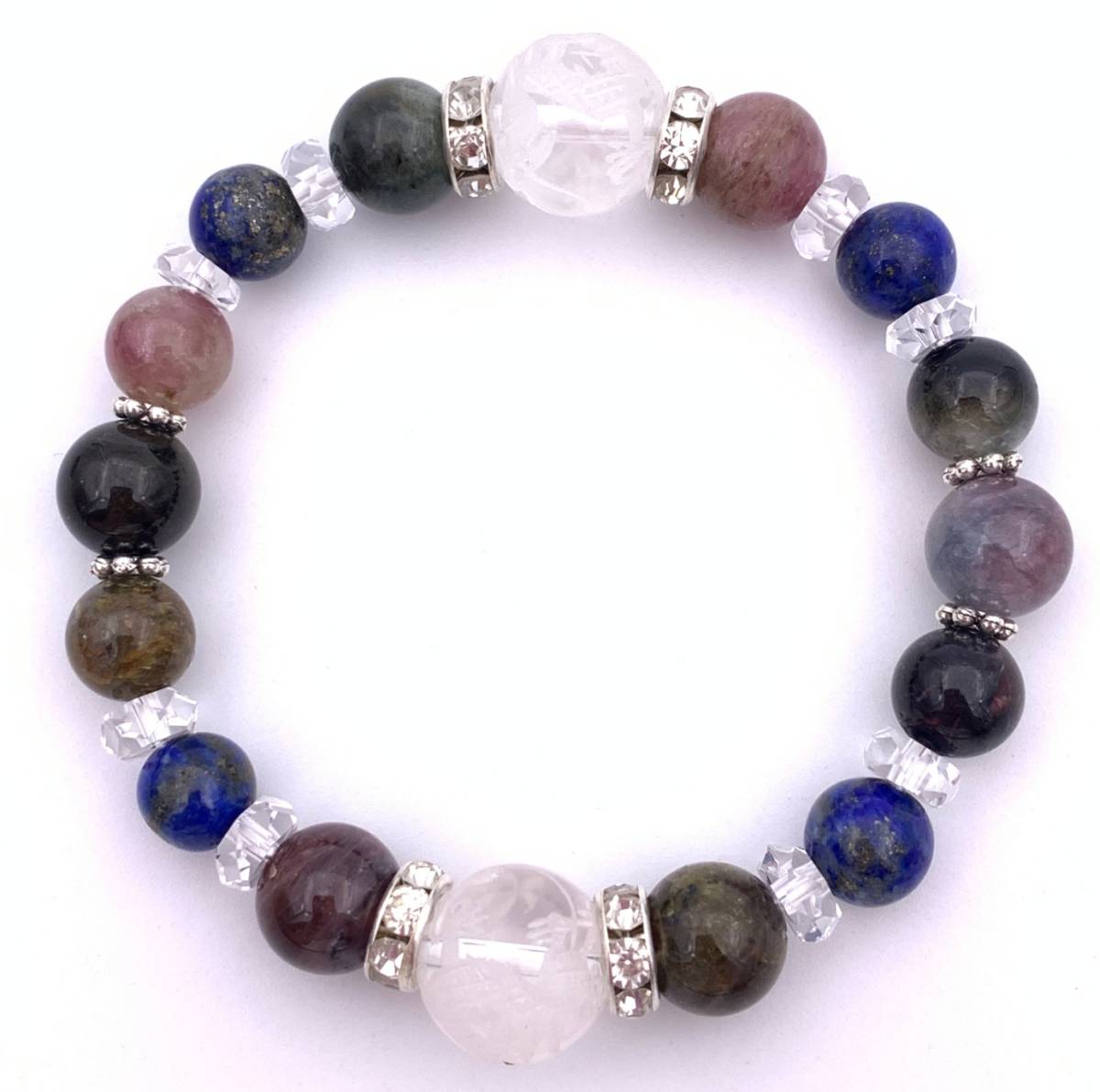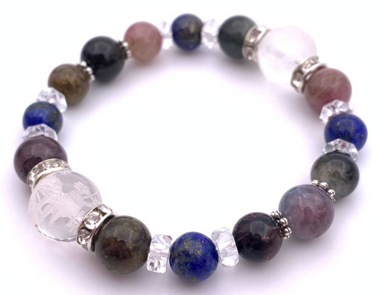 天然石彫り水晶青龍12mm玉&トルマリン&ラピスラズリのブレスレット