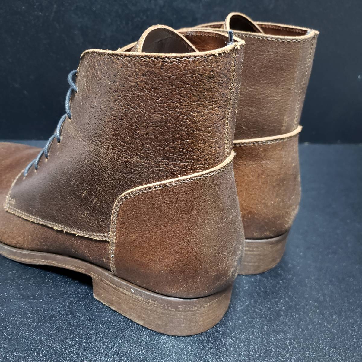 本製品はモデル名「PB7/009/76」、茶のレザーを用いたハンドメイドブーツです。