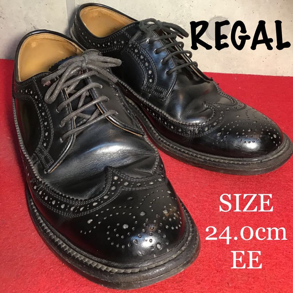 【売り切り!送料無料!】A-69 中古箱無し!REGAL/ビジネスシューズ/革靴/ウイングチップ/ブラック/24.0cm!特別価格!!