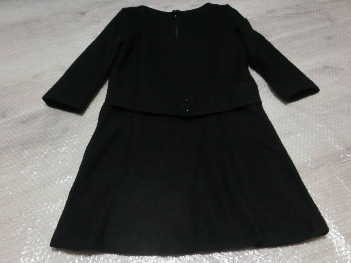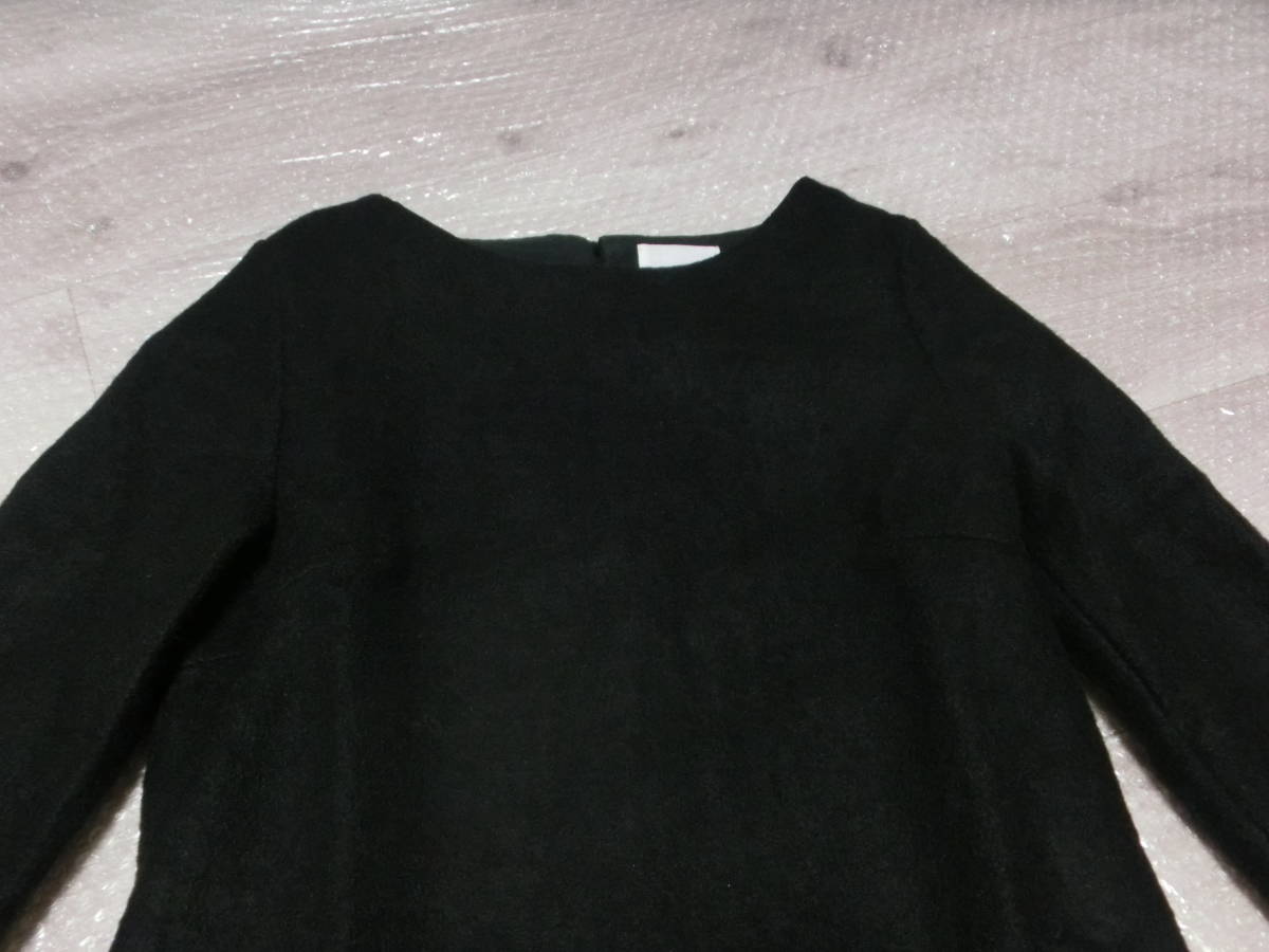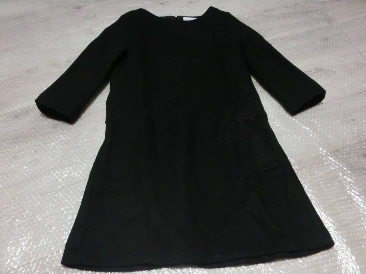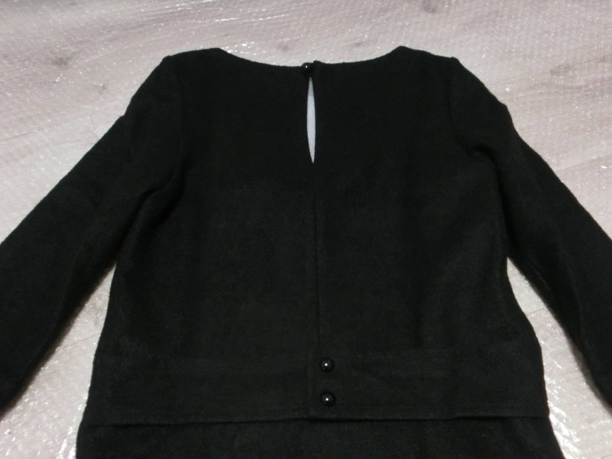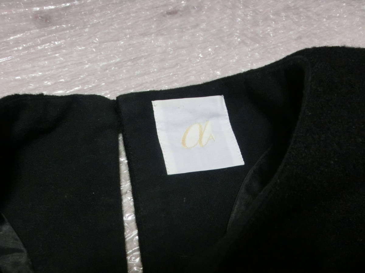 αA/アルファエー/上品なウール混七分袖ワンピース♪クロ/size38/定形外可