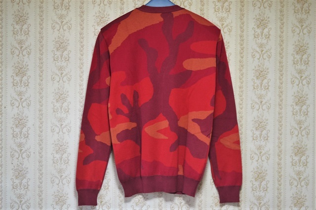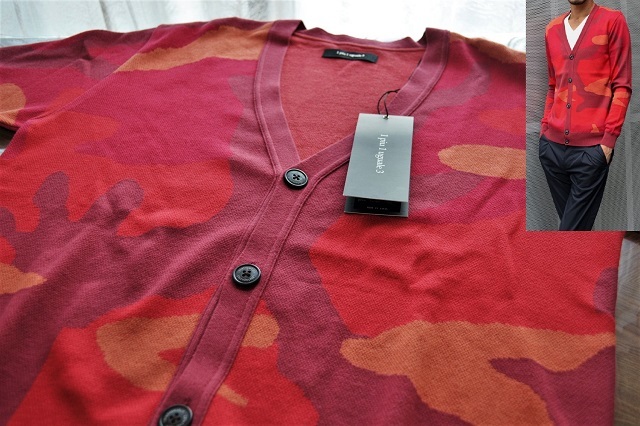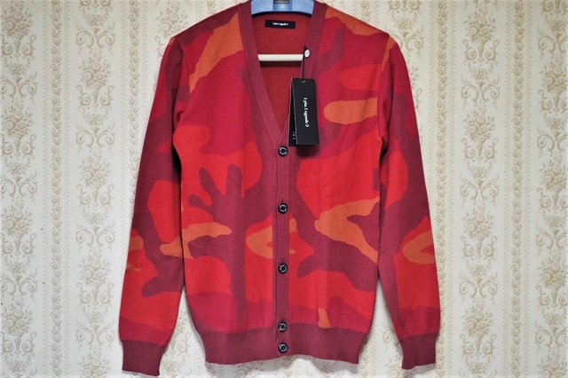 1piu1uguale3 ウノピゥウノウグァーレトレ BIG CAMO V CARDIGAN 高級エジプト綿GIZA採用 オリジナルビッグカモ Vネック ニット カーディガン【レッド系/サイズⅥ】です。