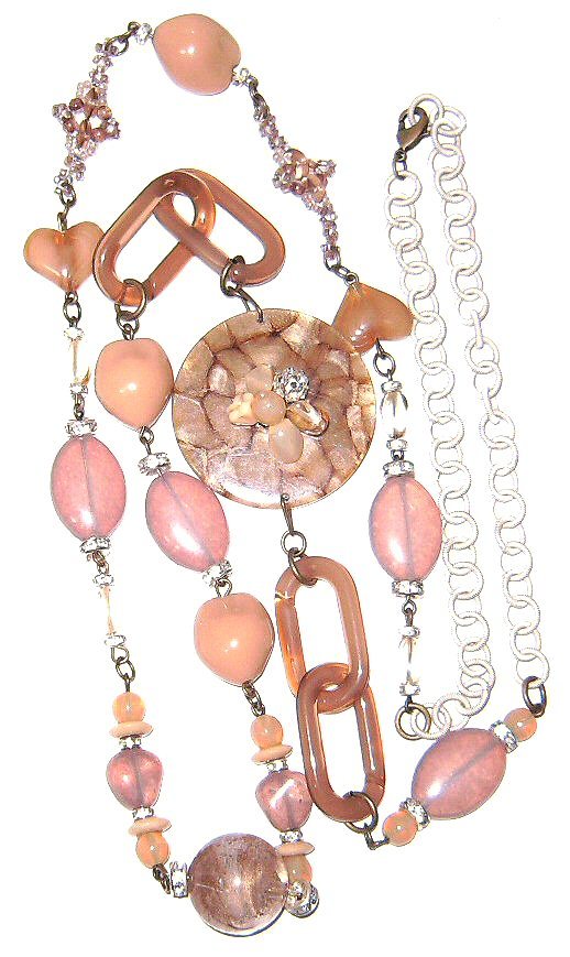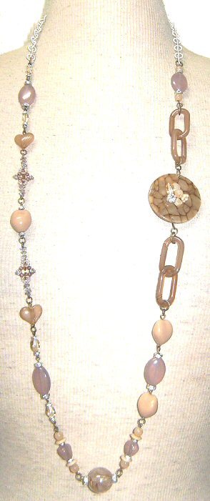 マーブル×ハート・ストーン×ラインストーン・ロング★ネックレス