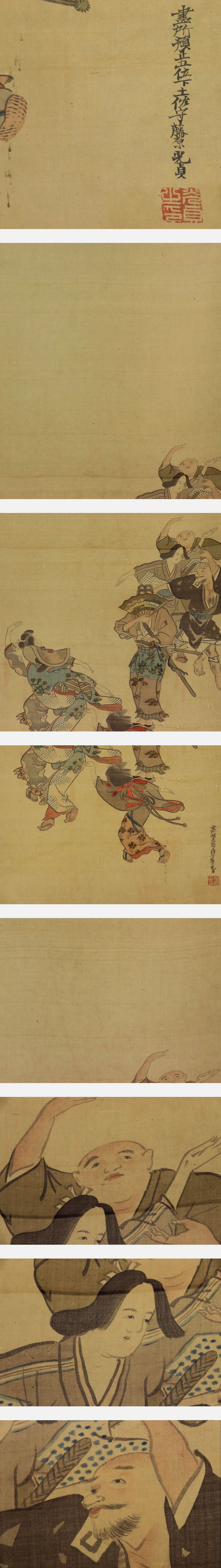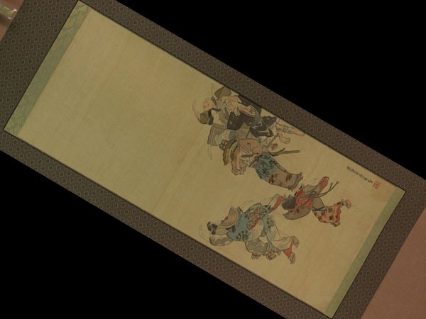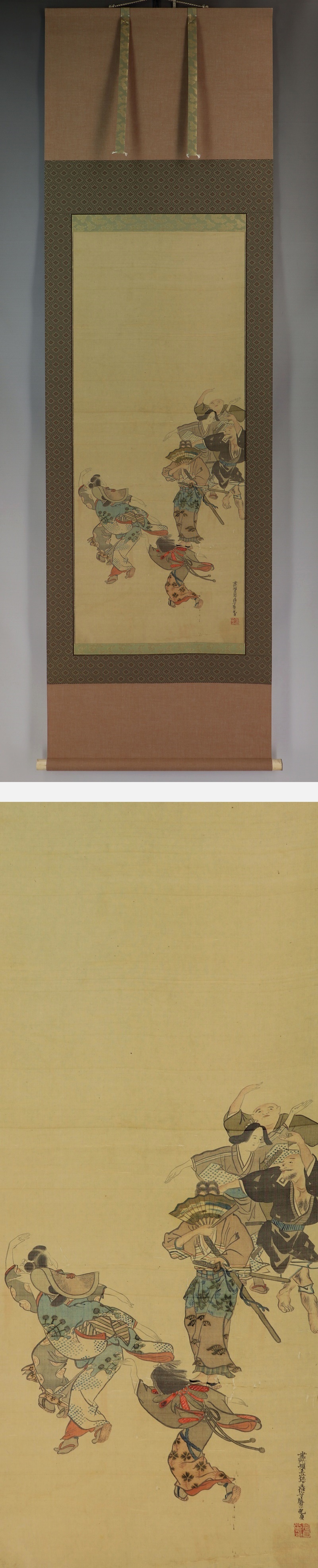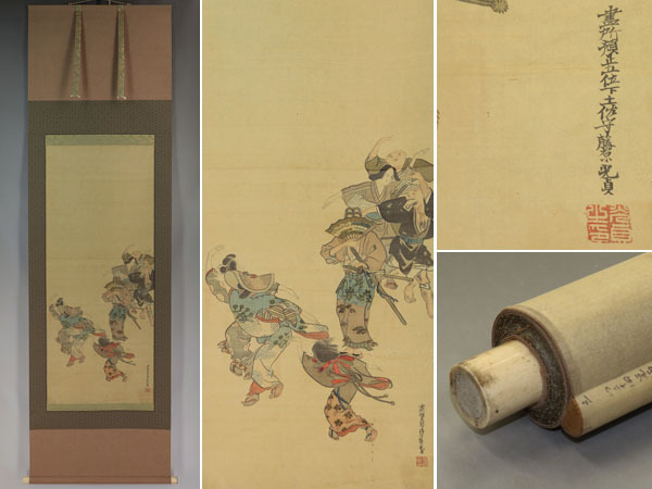 | №2009041【真作】土佐光貞【元禄踊り】◆絹本◆合箱◆掛軸 | |