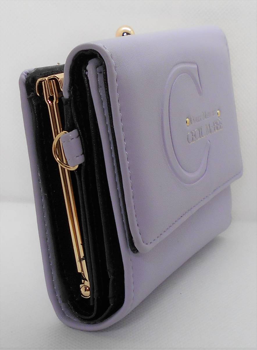 【新品】アウトレット セシルマクビー レディース 三つ折り財布 がま口付き パープル ※ご確認ください