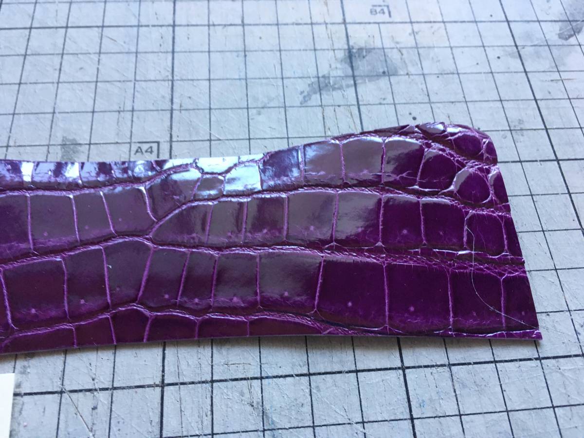 CRD-116★美色紫パープル★グレージング極上ポロサススモールクロコダイル ハギレ レザークラフト はぎれ アリゲーターキーホルダー