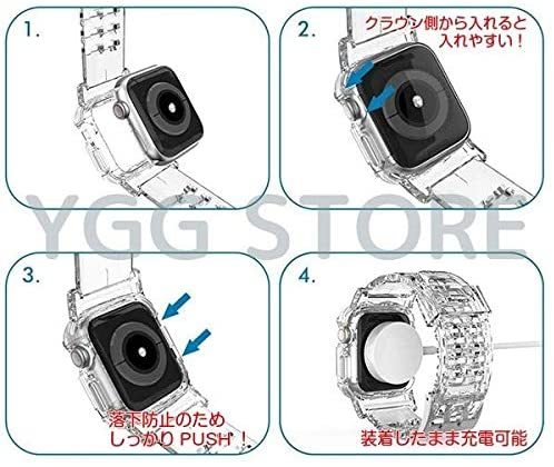 YGG★apple watch 一体型 保護ケース付き バンド ベルト クリア 透明 オレンジ 蛍光 ネオン 衝撃吸収 38 40 41 9 8 7 6 5 4 3 SE