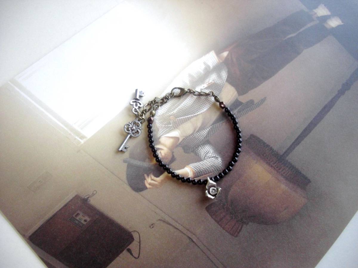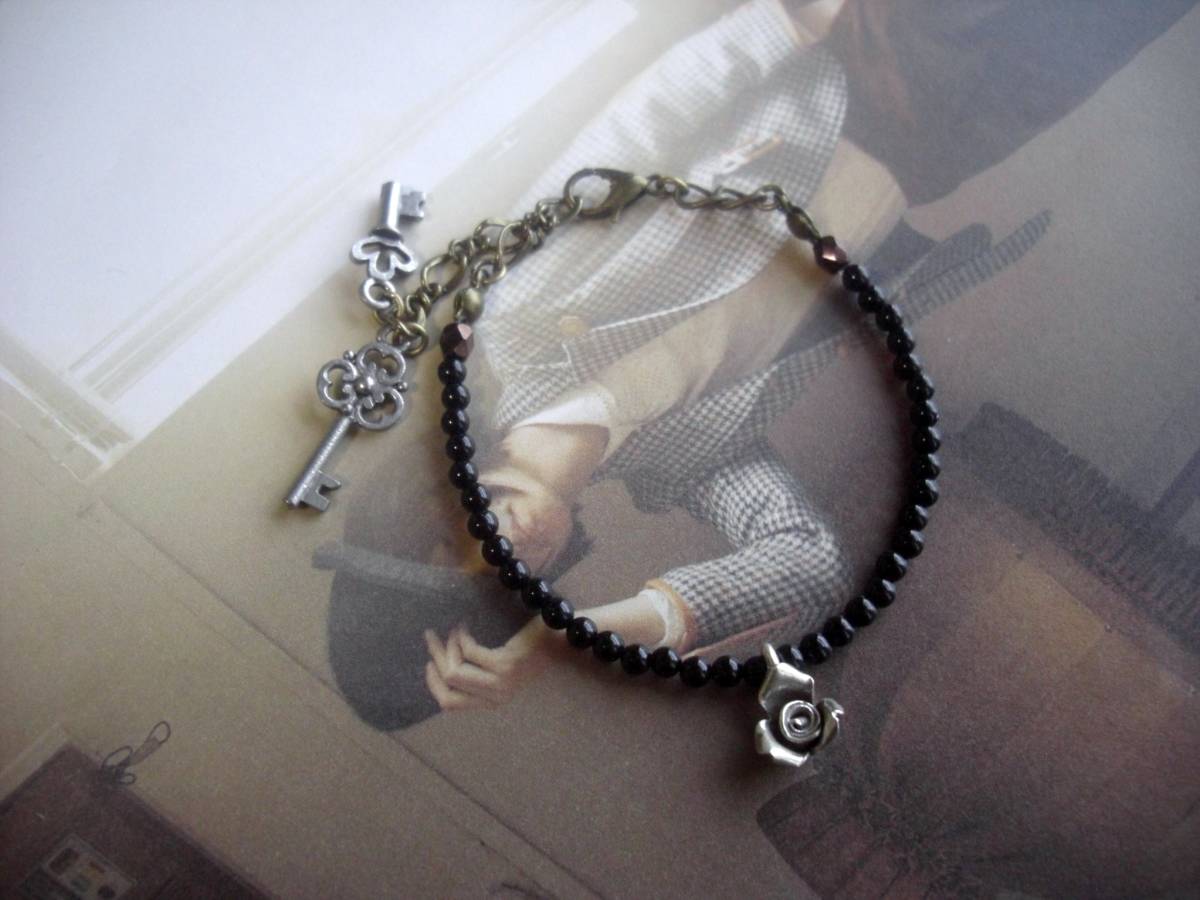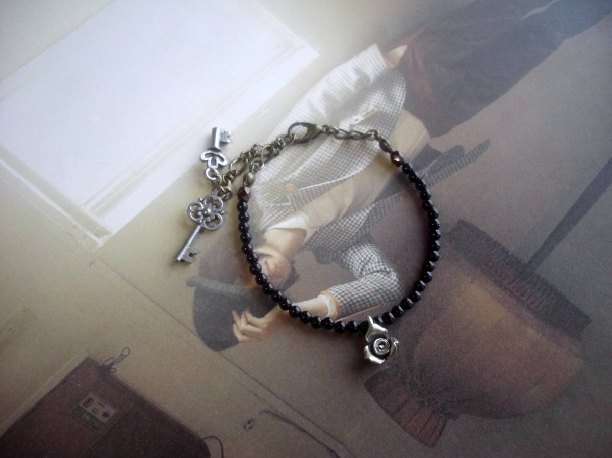 シックな薔薇を集めて・・シリーズです♪漆黒のオニキスとカレンシルバーの薔薇のブレスレットです♪小粒のオニキスの丸玉にメタリックなカレンシルバーの薔 薇を合わせて 大人パンクな表情です♪カレンシルバーの薔薇は10ミリ位です♪長さは16センチ位にアジャスターが5センチで全長21センチ位です♪お揃いのネックレスも出品しています♪♪シンプルでいつまでも着けられるデザインを考えて作りました!ハンドメイドをご理解頂いてノークレーム、 ノーリターンでお願いします