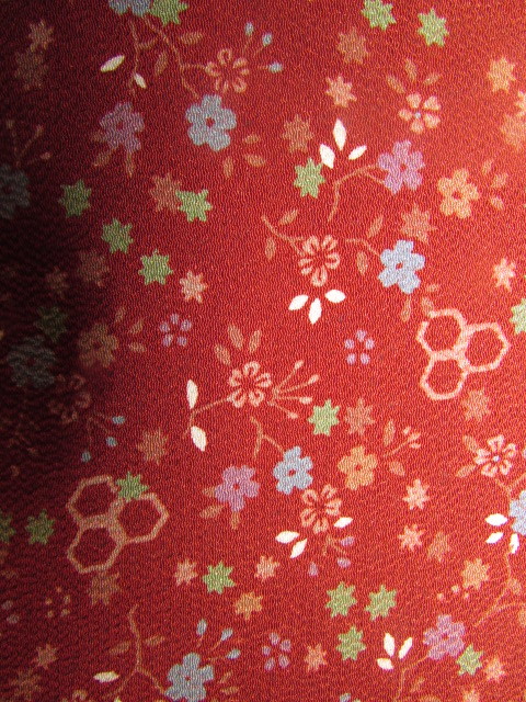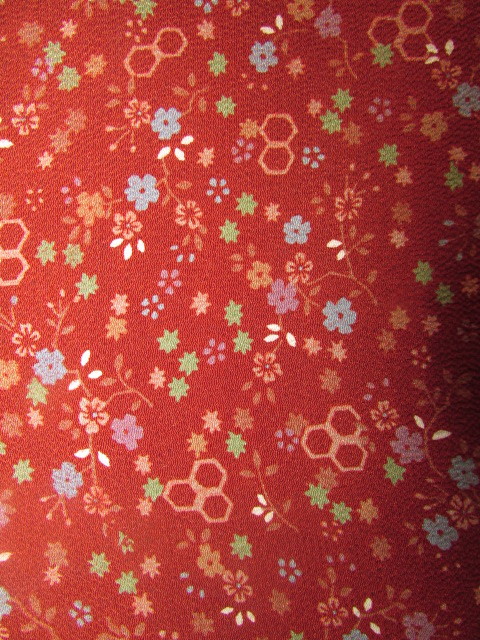 1000円値引き(着物屋・蔵出し)縮緬地(古布・草花模様小紋未使用羽尺反物)貴重・珍品