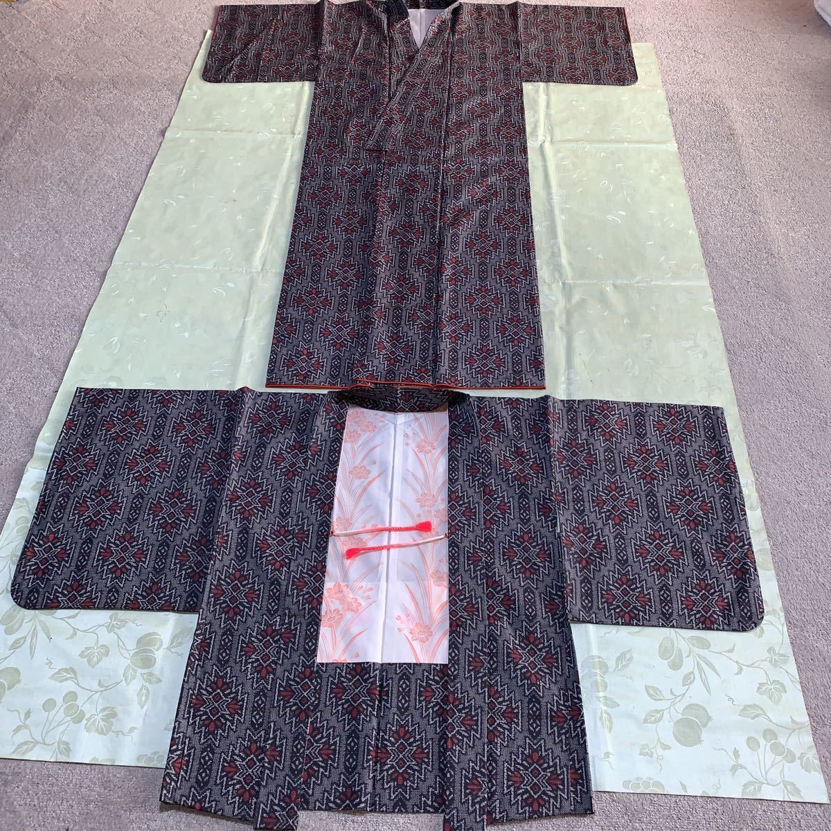 ・着物のサイズは身丈155cm、袖丈45.5cm、袖幅32cm、後幅28cm、裄63cm、前幅22.5cm程です