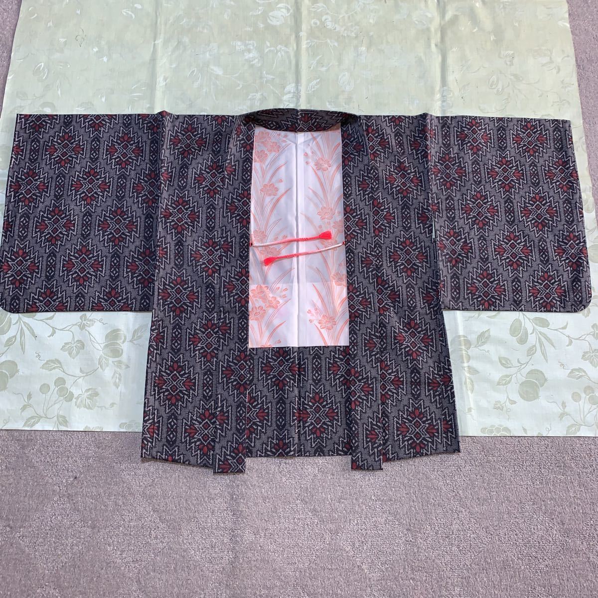 ・羽織のサイズは身丈73.5cm、袖丈45.5cm、袖幅32cm、後幅28.5cm、裄63cm、前幅17cm程です