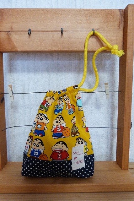 子供さんのコップ袋などに。。。 小さめの巾着袋です。。 ☆サイズ:18.5×14cm まち4cm 片ひもタイプです。 ☆カラー:イエロー系(キャラクター柄) *ひとつずつ丁寧に作りましたが、あくまでも素人の手作りです。多少のゆがみ等、細かい事を気になさる方や完璧を求められる方の入札はご遠慮下さい。*不明な点は出来る限りお答えしますので、質問欄からお願いします。*梱包資材は、基本的に家にある物を使っています。リサイクル梱包にご理解ください。 |