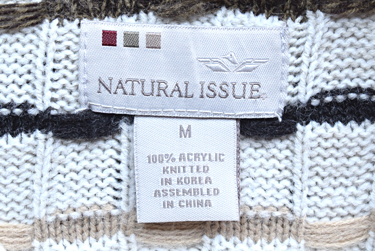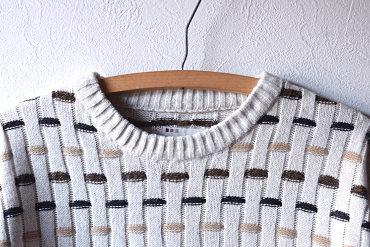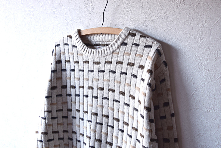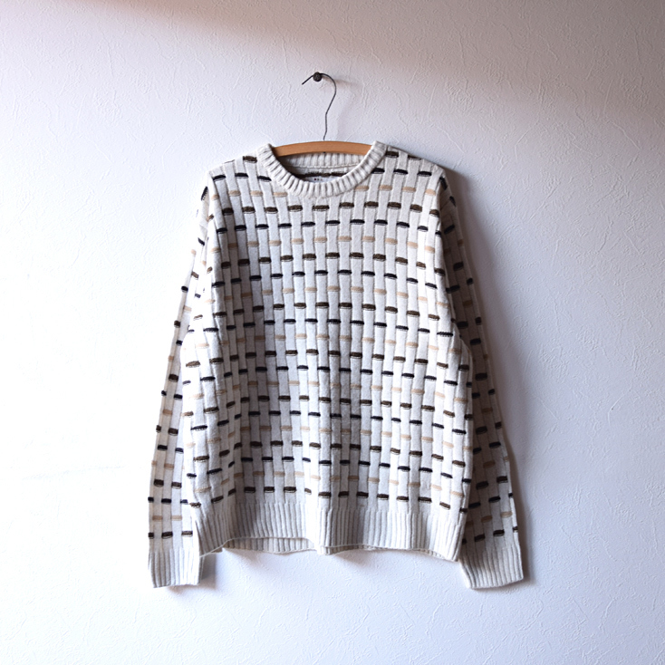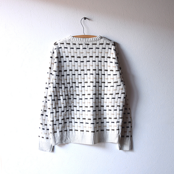【送料無料】90s ナチュラルイシュー クルーネック セーター デザインニット アクリルニット メンズM ヴィンテージ CH0478