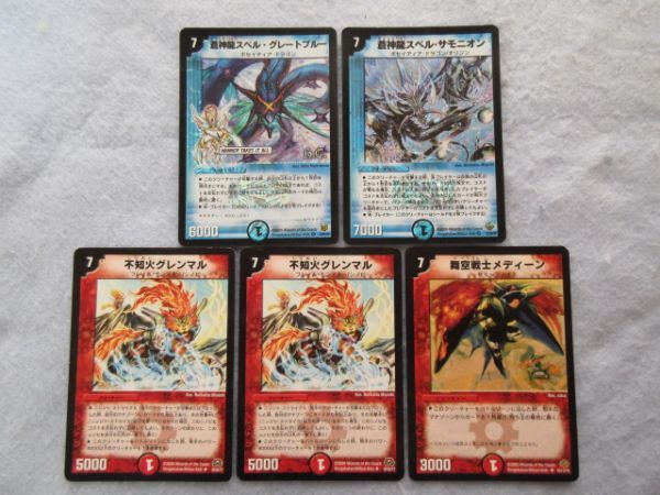 【デュエルマスターズ】蒼神龍スペル・グレートブルー 蒼神龍スペル・サモニオン 不知火グレンマル 舞空戦士メディーン 8271 72 74 75