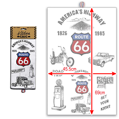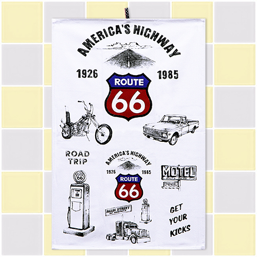 古き良きアメリカを思い起こさせる<RT.66>をモチーフしたキッチン タオル。 キッチンの水まわり、洗面台、バスやトイレなどシーンを選ばず使えるのはもちろん、オシャレなデザインなので、お部屋を飾るタペストリー等々、アイデア次第で様々な用途に活用できる万能アイテムです。 サイズ:約 H:69.0cm W:45.5cm COTTON100% | |||