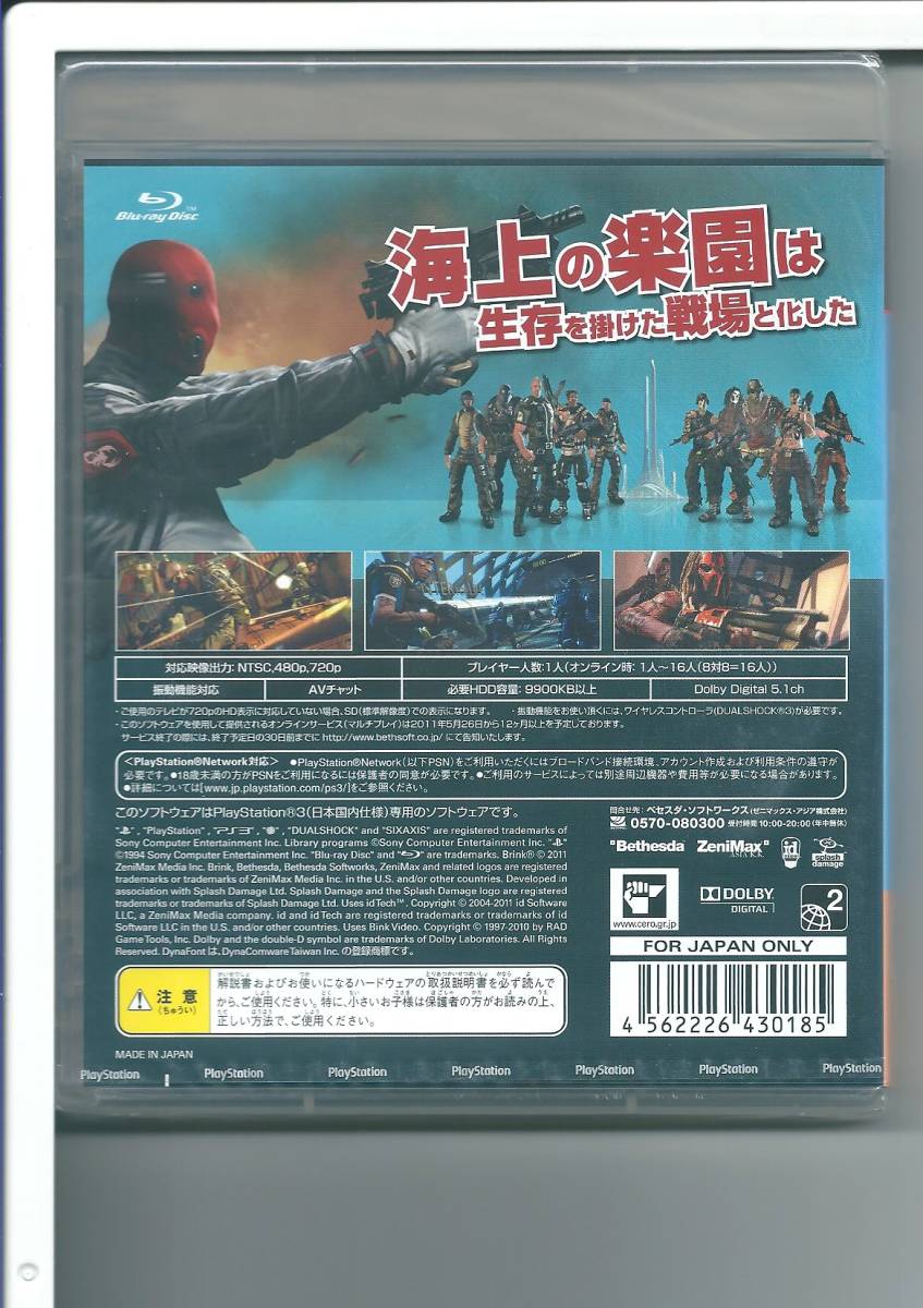●JANコード4562226430185 n3 ☆PS3 ブリンク BRINK 外装不良 ●商品の状態 新品未開封、包装されたままの状態ですが、包装・ケースにスレ・イタミがあります。 |