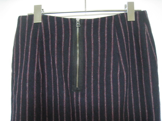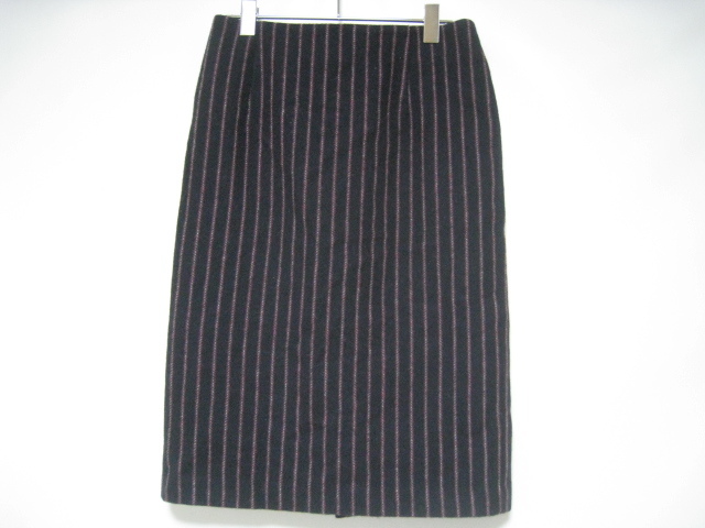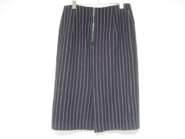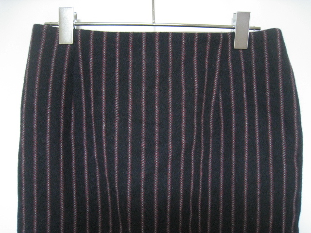 LE SOUK ルスーク ボトムス タイト スカート ひざ丈 スリット 背面ファスナー 紺×赤 ネイビー×レッド ストライプ サイズ38 毛混