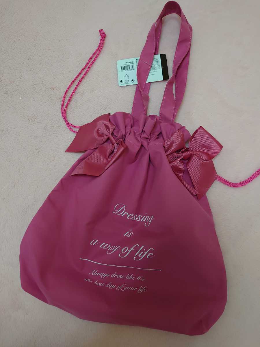 ★ 新品タグ付きのKarinpiaのリボン巾着トートバッグです!☆ お色 : ピンク ☆ サイズ: 縦約38cm 横約31cm マチ約6cm ☆ ポリエステル 100% ☆ 耐荷重4Kg ★ リボンをほどかなくても両脇の紐を引っ張ればすぐにしぼんで巾着になります♪ ☆ エコバッグにもオススメです! 海にもオススメです!メゾンドフルール好きな方にも!!☆ 用途万能バッグです!この機会に是非どうぞ!!★ ノークレーム・ノーリターンでお願い致します★