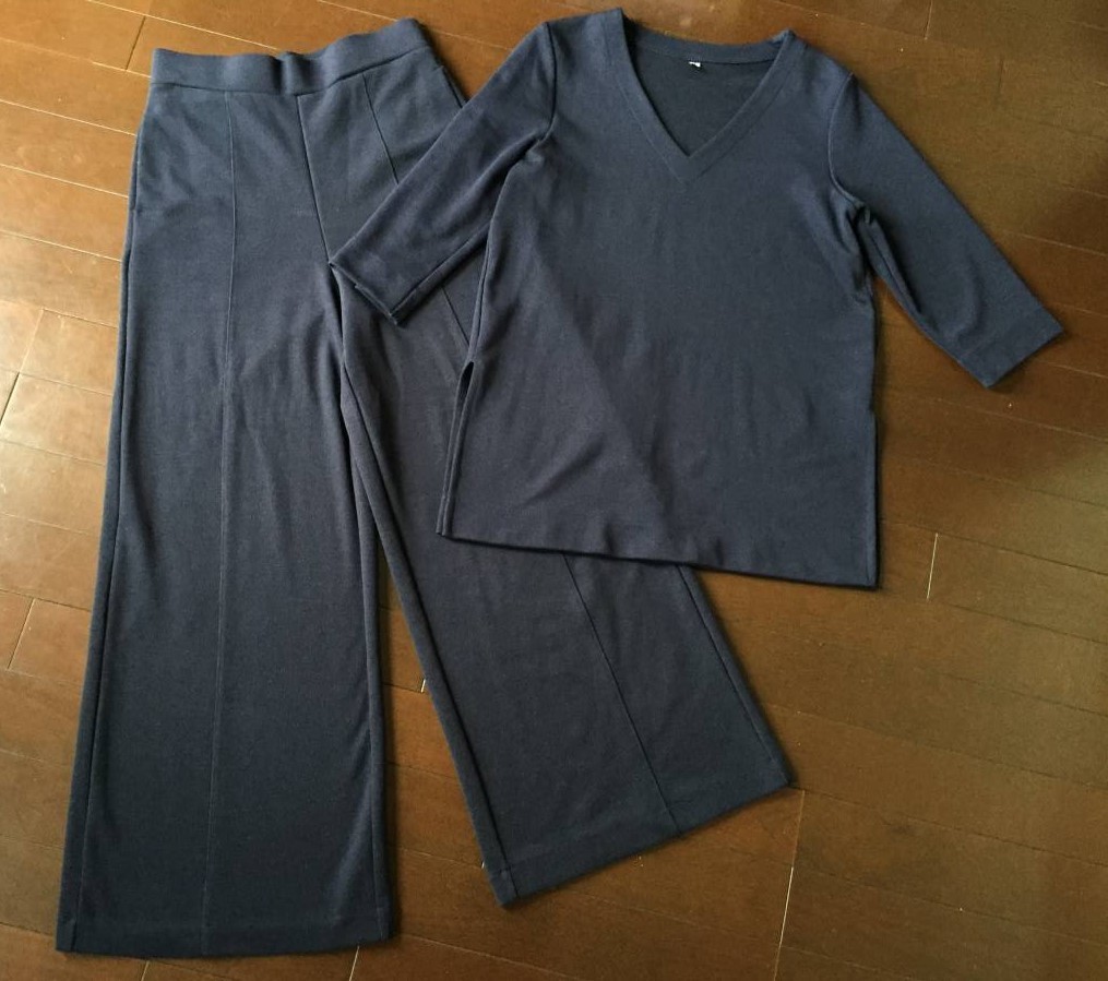 ユニクロ★ニット セットアップ サイズ : 実寸(トップス)肩幅39cm、身幅46cm、袖丈40㎝、 左右裾スリット20cm、着丈64cm (パンツ)ウエストゴム66~80cm、総丈96cm、股下66cm ※表記は、Sですが大き目なのでMサイズの方でも着れます。 実寸を参考にして下さい。 材質 : ポリエステル81%、レーヨン17%、ポリウレタン2% 色 : 紺 (写真2枚目、3枚目が近いです) | |