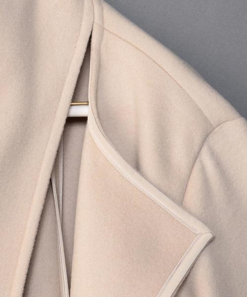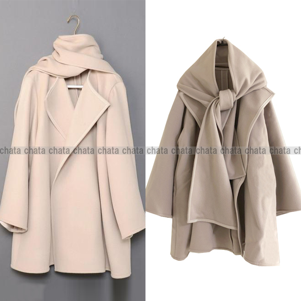 ゆったりとしたビッグシルエットと、ネックにストールをあしらたデザインが新鮮なハーフコート。