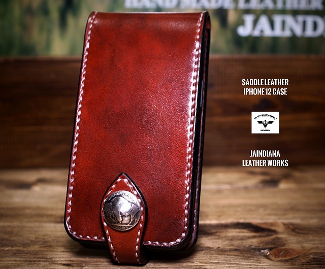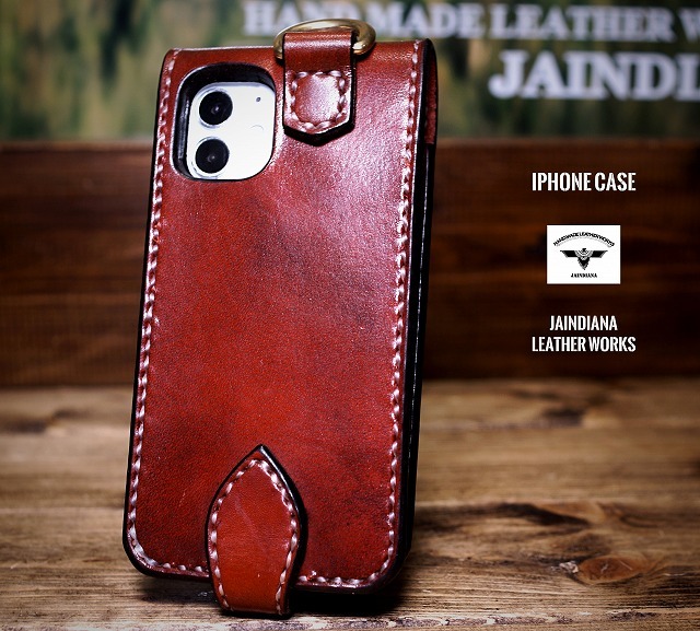 ハンドメイド/サドルレザー iPhone 12miniケース ビンンテージ染めバーガンディーC | ||||