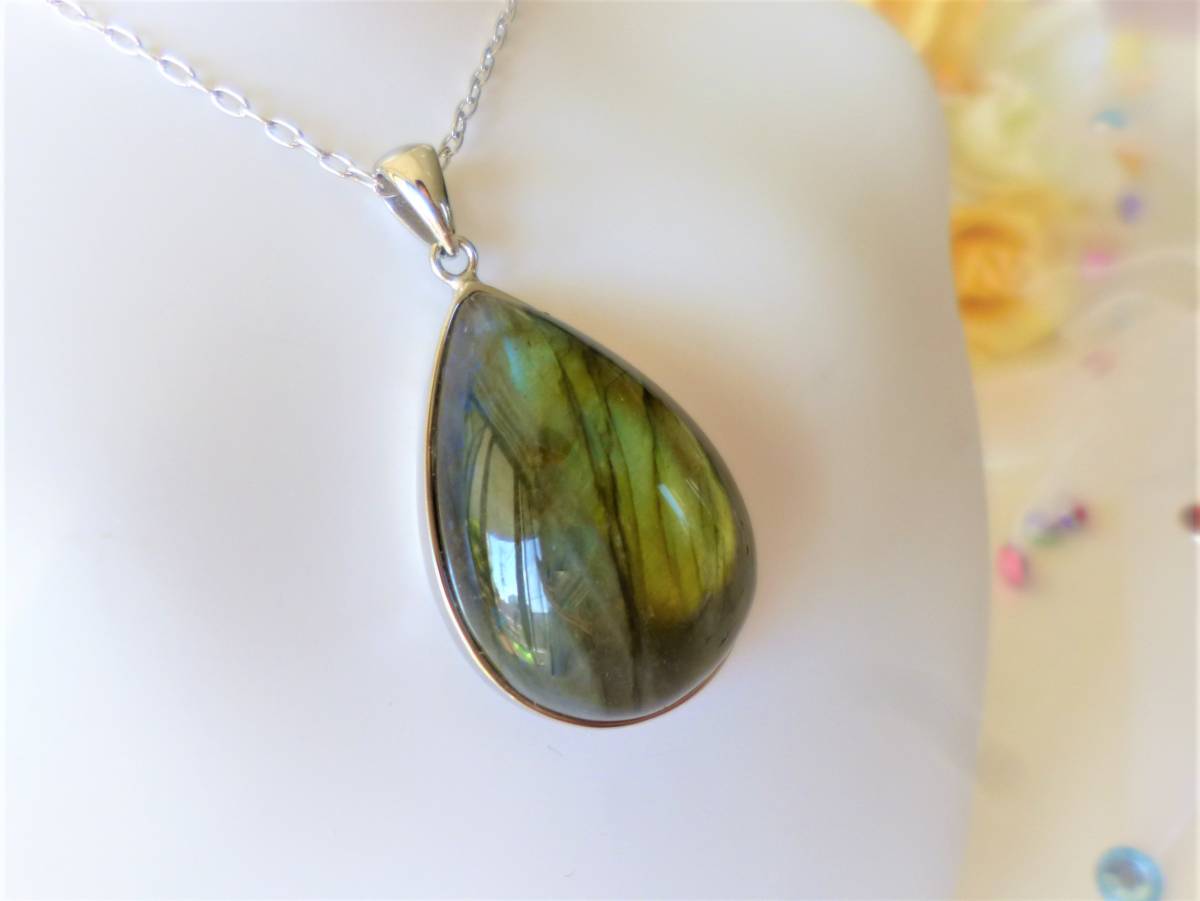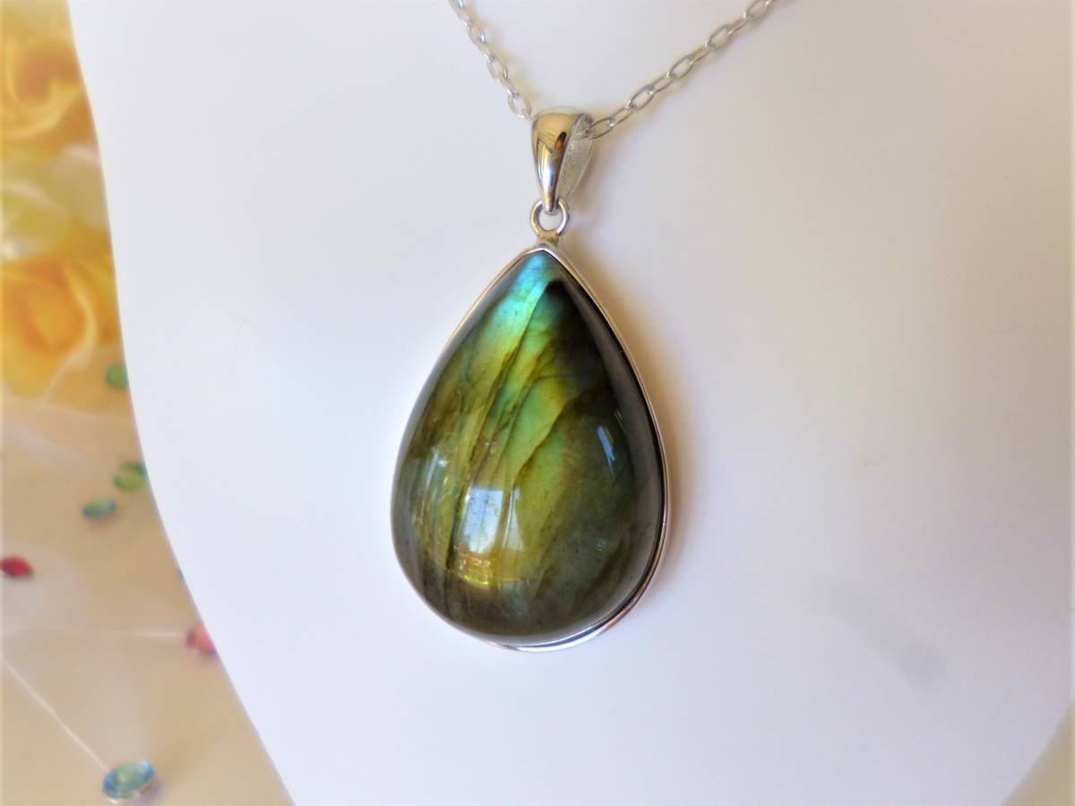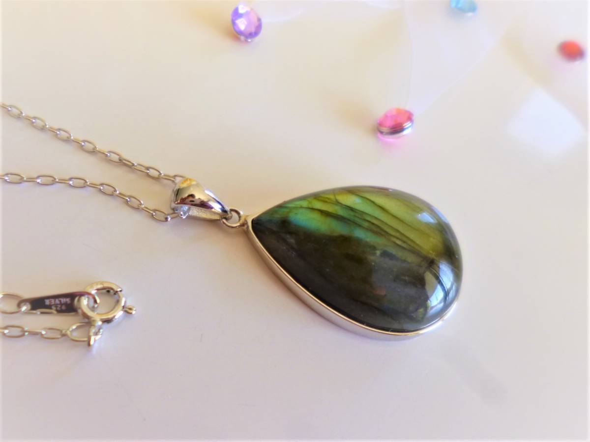 大粒☆ ☆1点もの☆  ☆神秘☆  宇宙からのメッセージ☆   太陽象徴☆   波動☆   ☆直感☆   ラブラドレッセンス☆   高品質AAA  ☆ラブラドライト☆   ☆ネックレス☆   ☆45cm