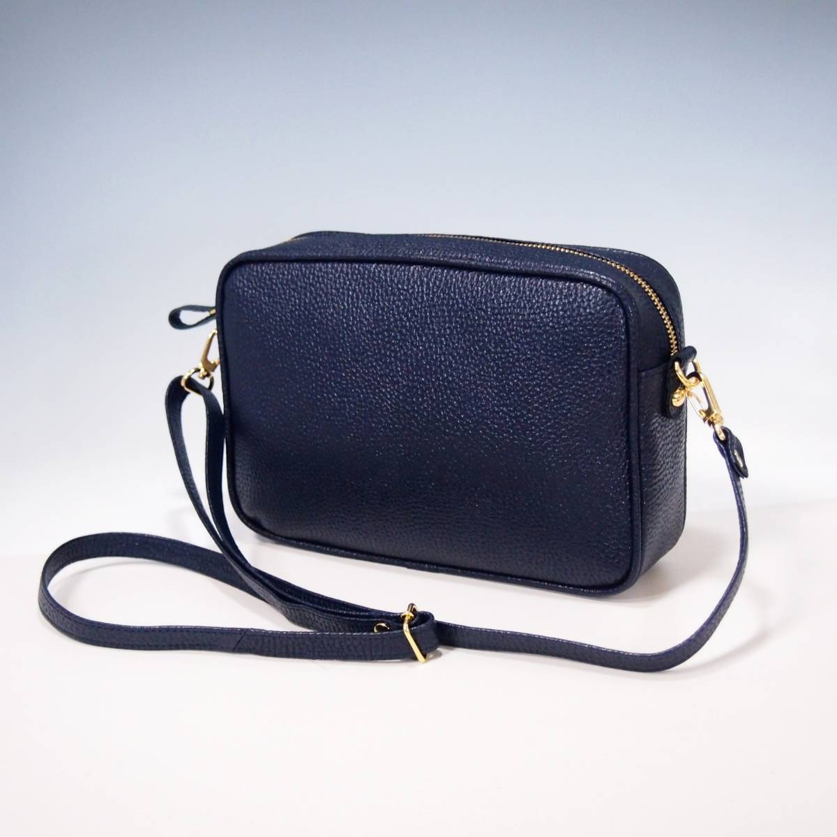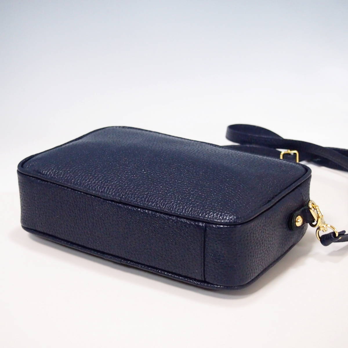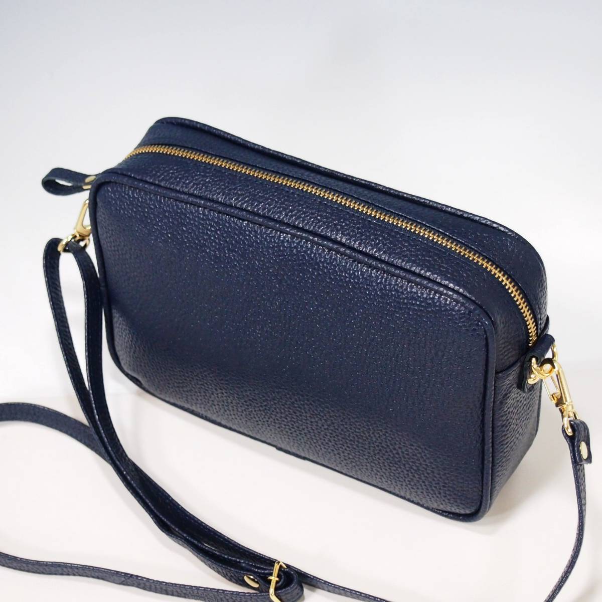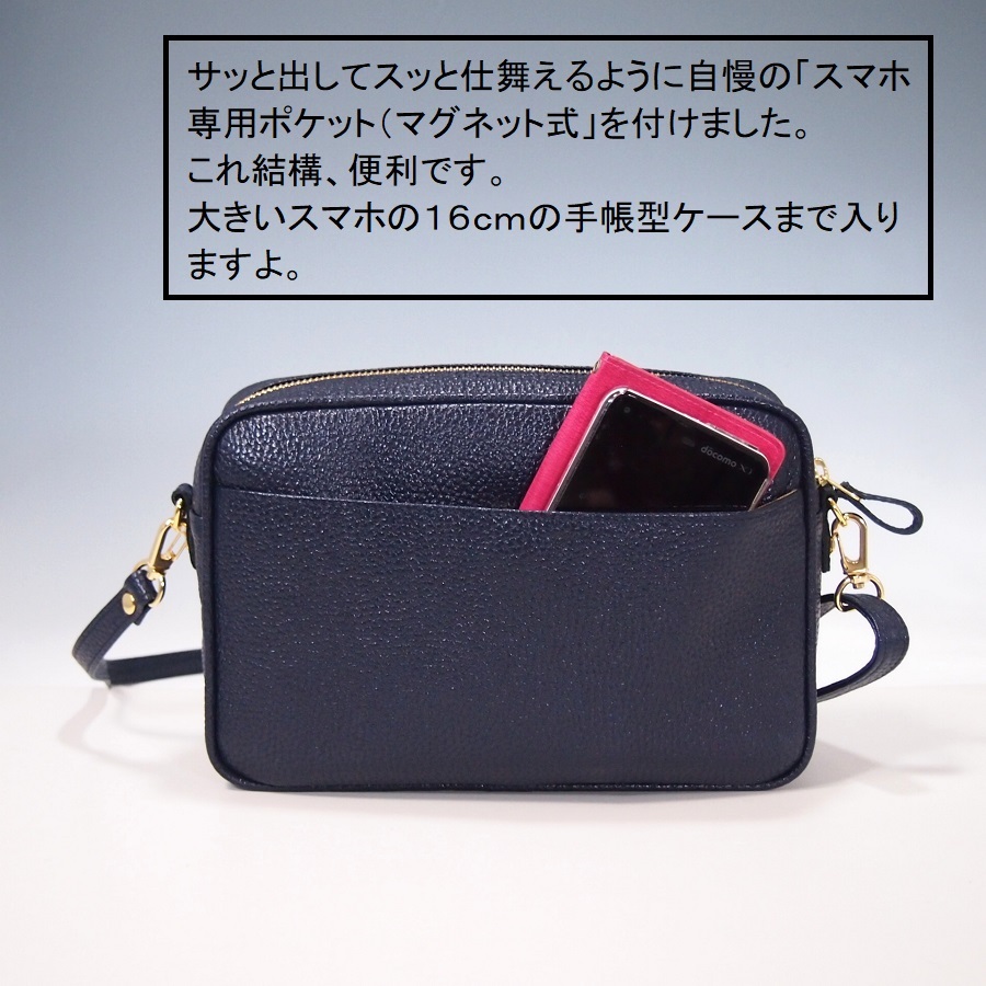 ★新品★日本製★牛革★スクエア・フォルム★サコッシュ★斜め掛けショルダーバッグ★お財布ポシェット★スマホポケット★ネイビー色★