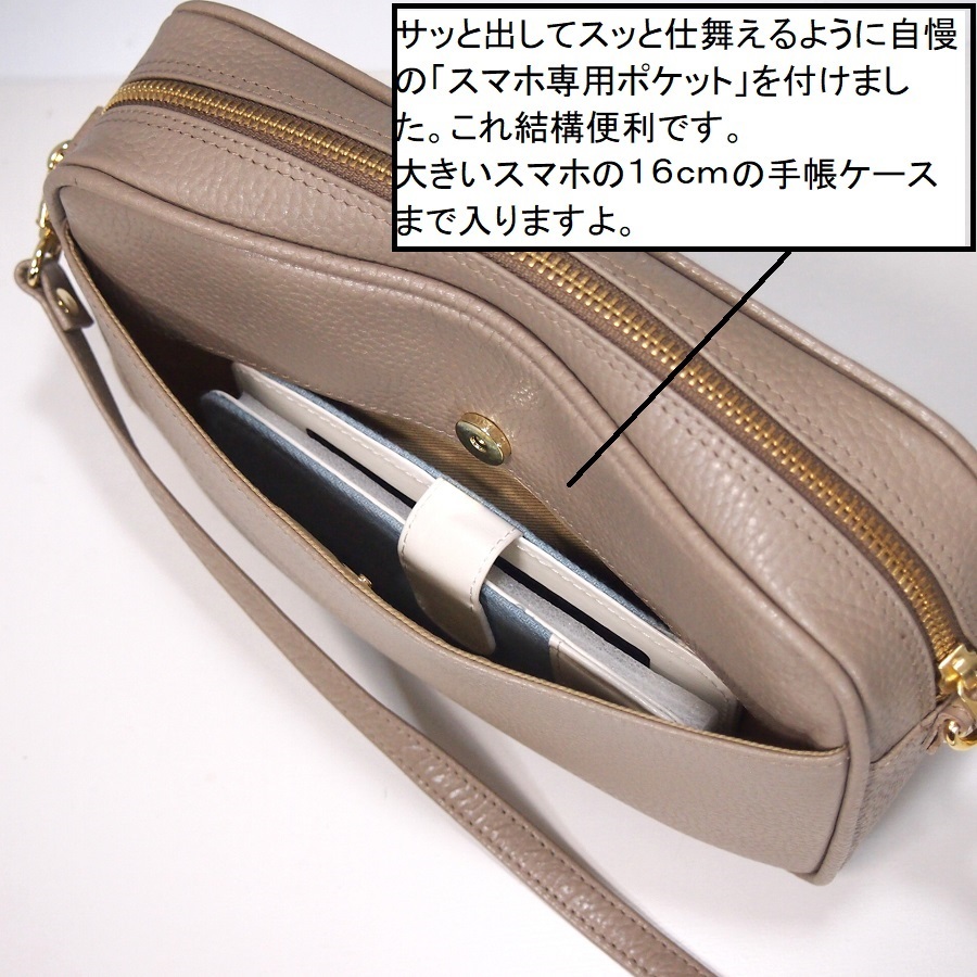 ●日本のハンドバッグ職人が1本1本丁寧に心をこめて作り上げた本革(牛革)のショルダーバッグです。