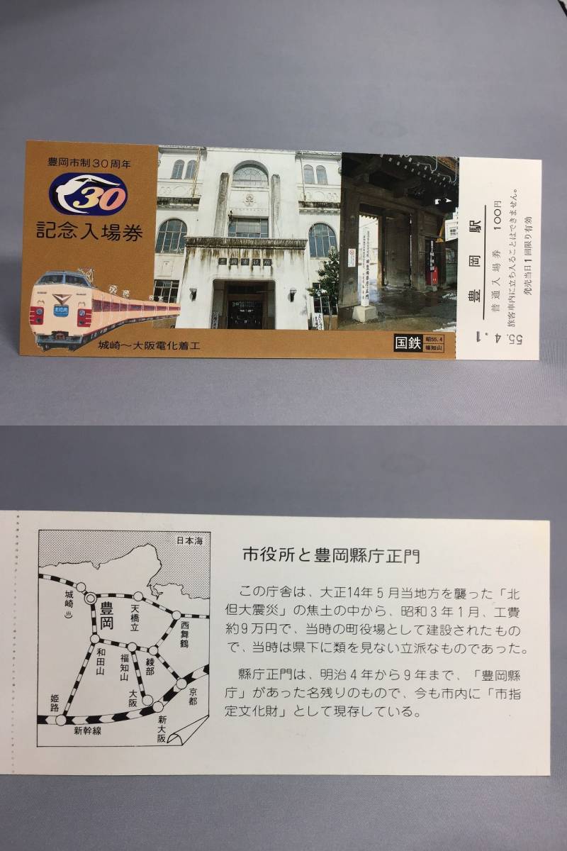 国鉄・福知山鉄道管理局 昭和55年4月1日 豊岡市制30周年記念入場券 (城崎~大阪電化着工)5枚【k17-052】